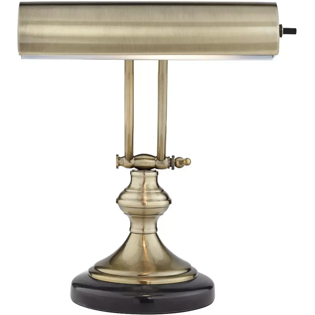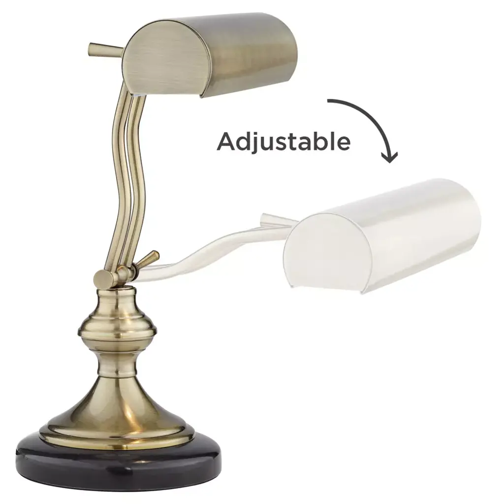 Piano desk lamps like this one can provide plenty of light to easily read the notes on your sheet music. Handsome, traditionally styled piano desk lamp looks great on writing desks, accent tables, and piano stands. In a lush antique brass finish with marble base.