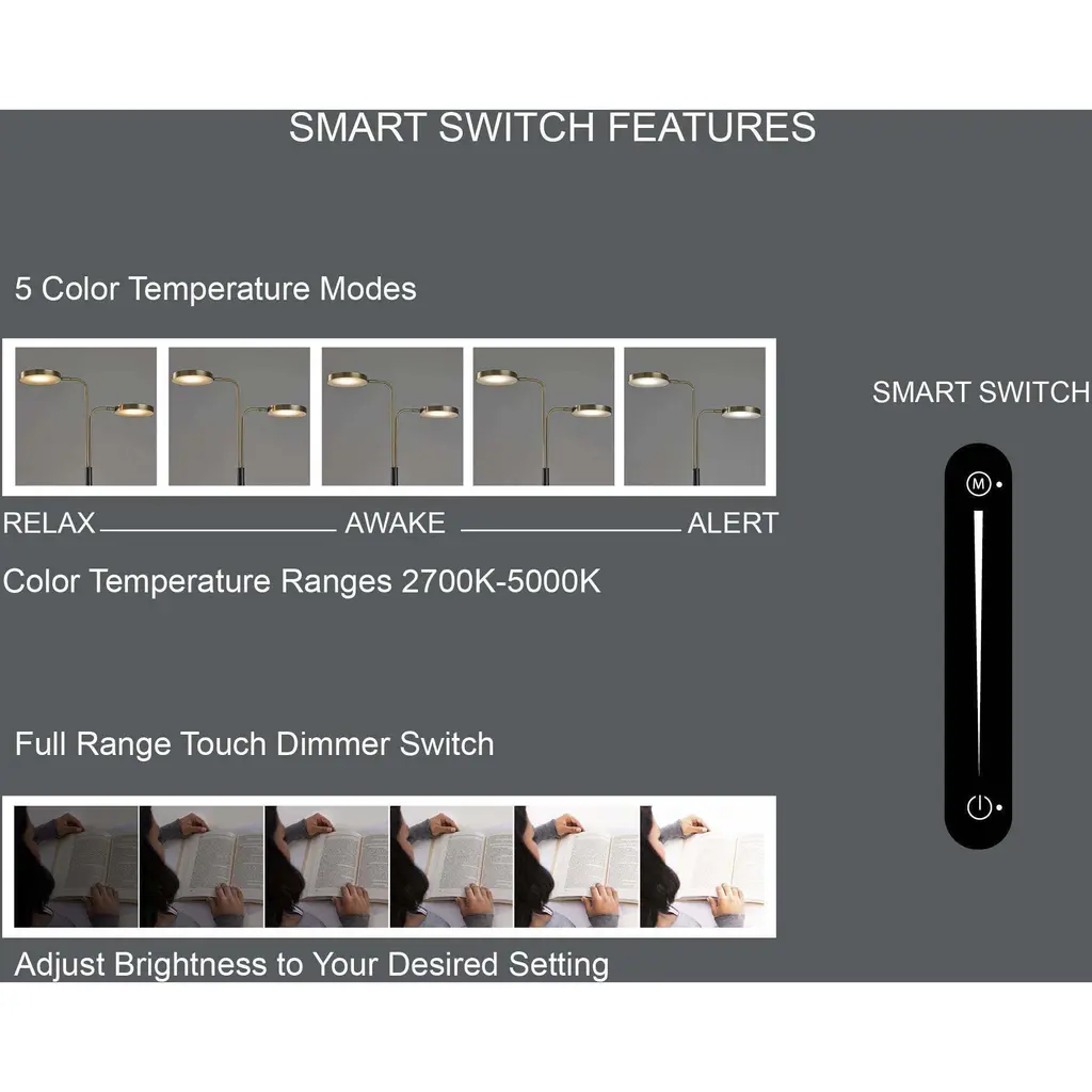 The Rowan LED Desk Lamp with smart switch is high powered, high-tech, and high functioning with a mid-century modern look that you won’t find anywhere else. Complete control of the light intensity and color allows you to customize the light to your needs at any time of the day. Whether you are working, reading or relaxing, the 5 light color temperature modes provide you with various options to suit your environment and mood. The color of the light is controlled by a sleek touch switch located on the pole, which is also used to adjust the light intensity offering a full range of brightness options. A matte black finish mixed with antique brass accents elevates the look. Two adjustable shades allows for 800 lumens of flicker free, energy efficient LED light to reach any area of the workspace. All Adesso lighting product is either UL or ETL listed, meaning that it has been tested and approved to meet the government-regulated safety standards for the USA.