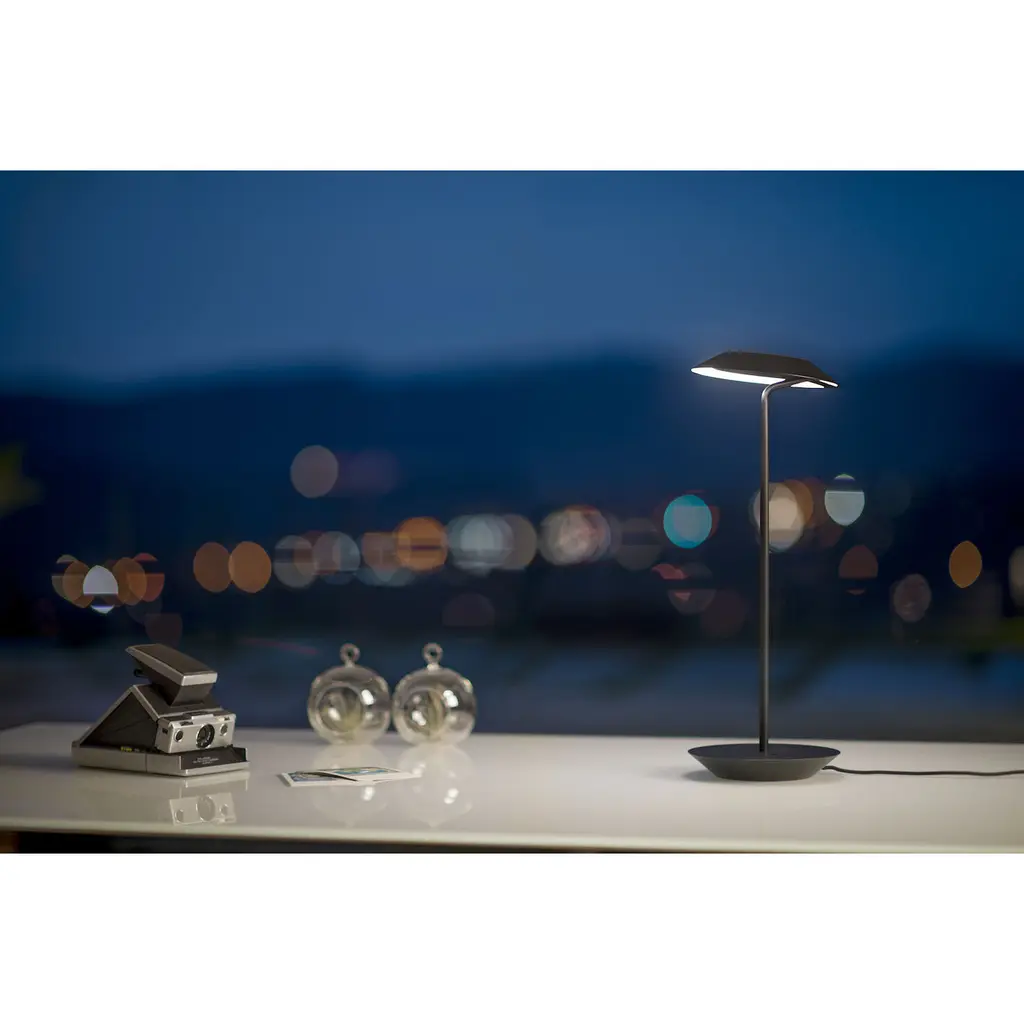 The Royyo Desk lamp adds an elegant flair to any space with its minimal wiring and pleasing circular design. Its minimal silhouette houses complex inner technology for a marriage of form and functionality. Royyo's embedded USB port allows users to charge