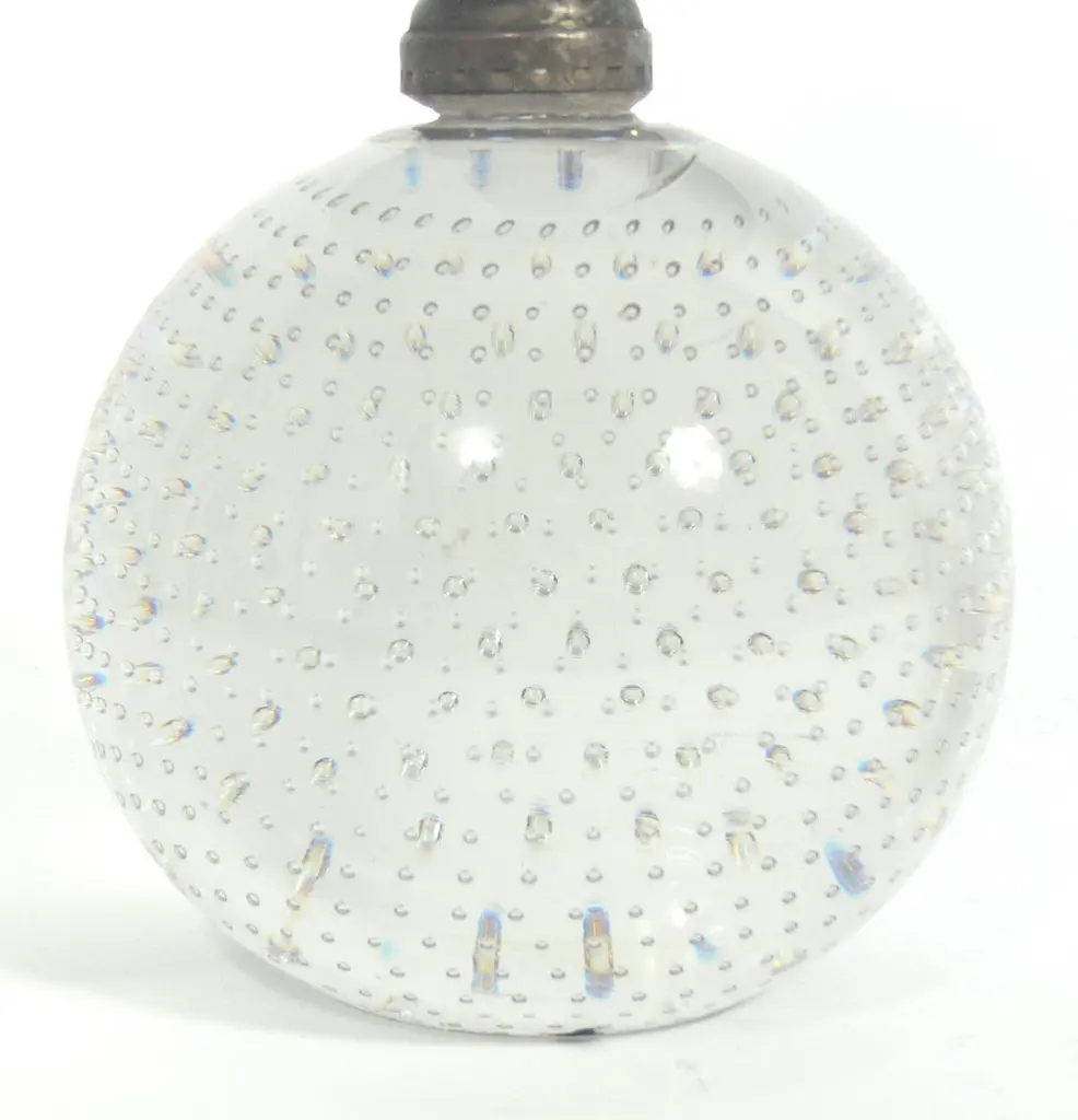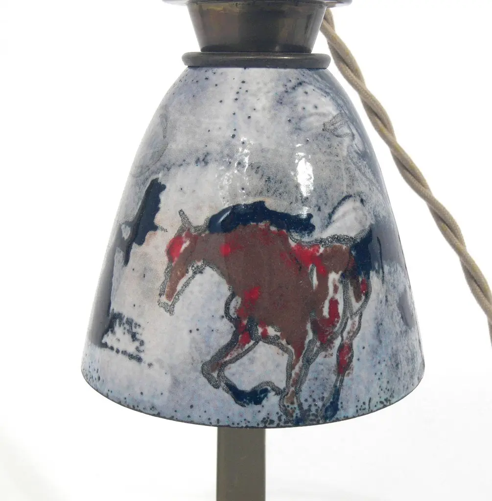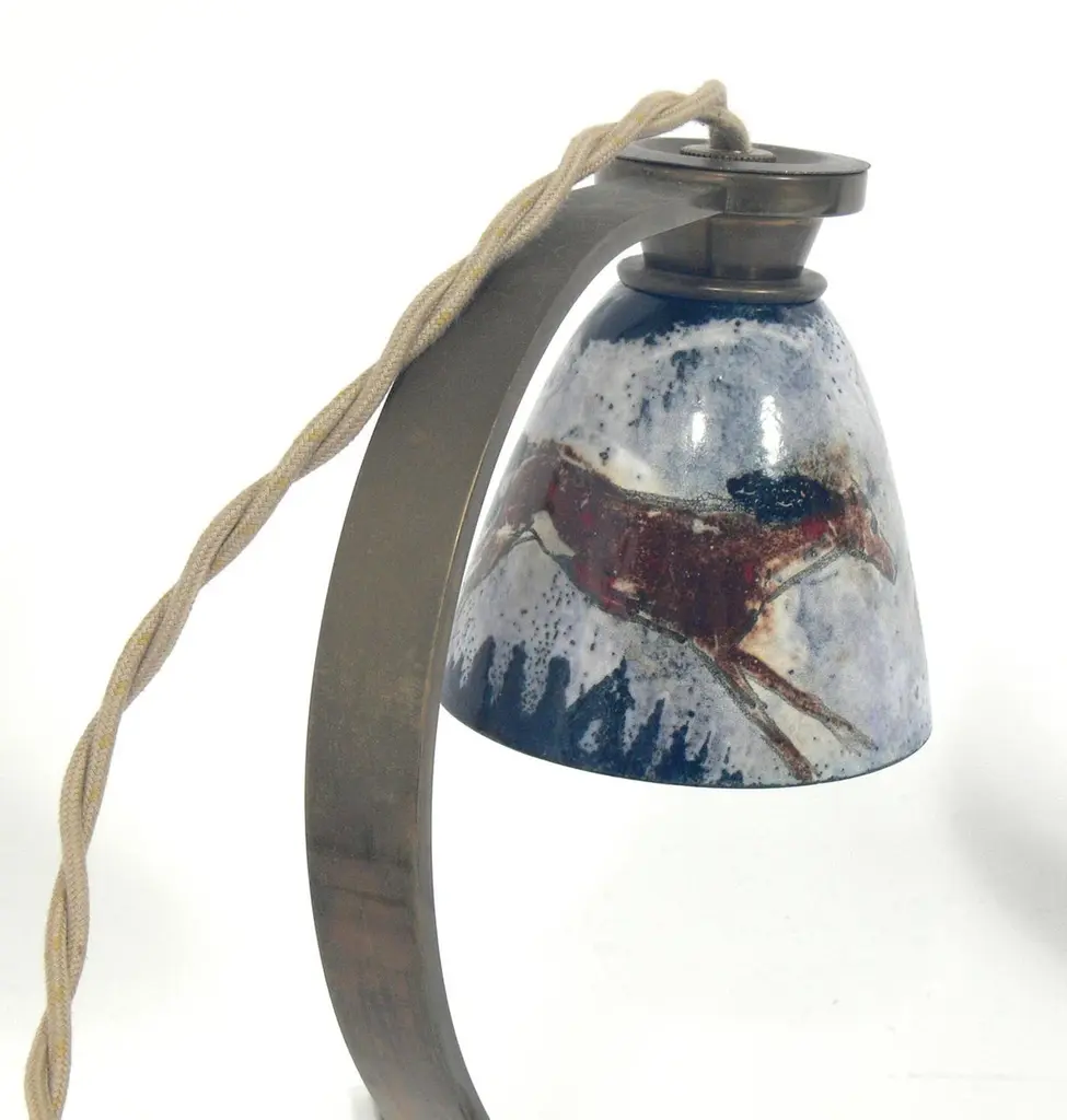 Selection of Petite French & Italian midcentury desk lamps, circa 1930s-1950s.From left to right, they are:1) Italian brass and enameled metal desk lamp, Italy, circa 1950s. It measures 10.5" H x 7.5" D.2) Italian brass and enameled metal desk lamp, Italy, circa 1950s. It measures 9.75" H x 6.5" W.3) French crystal orb lamp, in the manner of Jacques Adnet, France, circa 1930s. It measures 11.5" H x 5" W.They retain their warm original patina. They are rewired and ready to use. They are priced at $750 each.