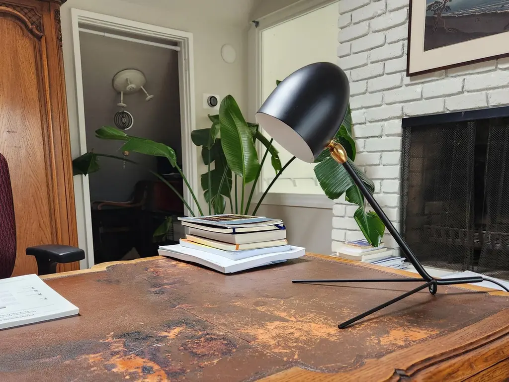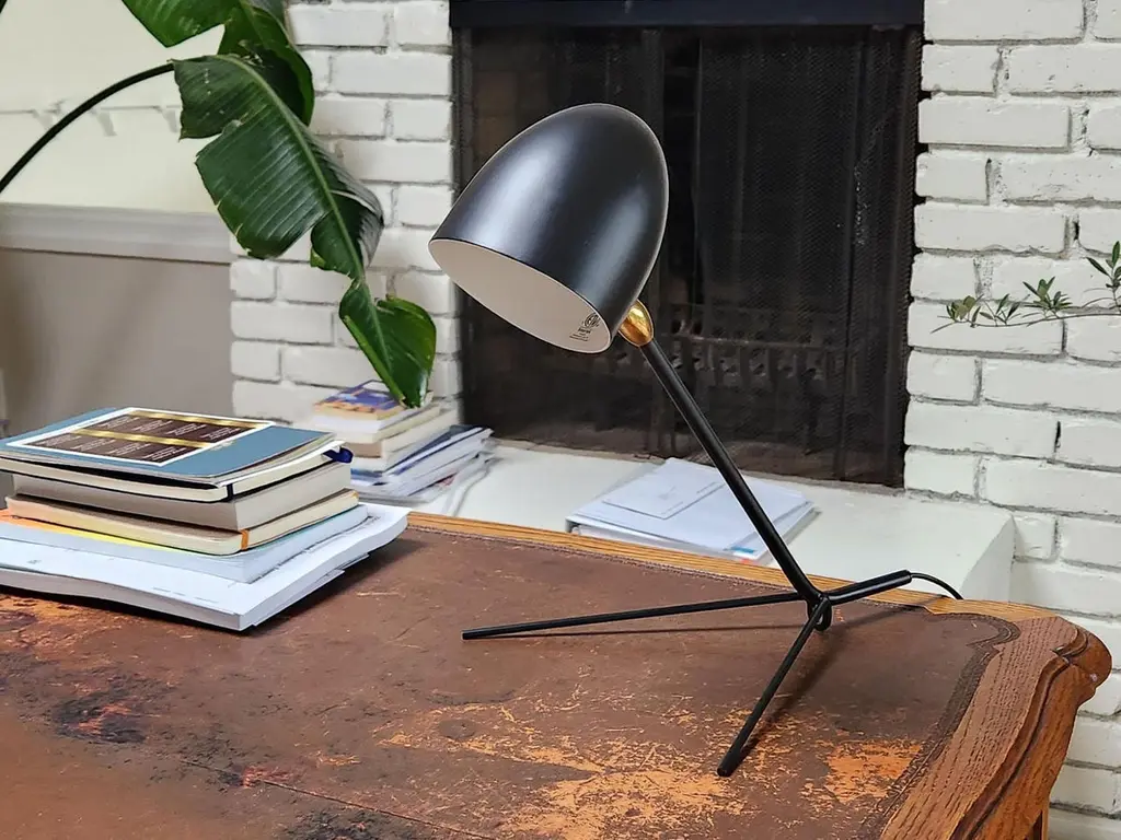 DESCRIPTION:An elegant triangular base supporting a slender, straight arm and cylindrical shade allows this deceivingly simple lamp to adapt well in any setting.COLOR OPTION:Available in Black or WhiteFEATURES:Shade rotates and swivelsSWITCH OPTIONS:The Cocotte desk lamp has the switch on electrical cordWHAT SETS US APART? - Technical expertise - Full line of products - Availability - Customization - 5 year guarantee - Secured shipment - Small Repairs - After sale service - Experience (we introduced these lamps to the US, 23 years ago).WHAT TO LOOK OUT FOR:- No expensive international shipping, - No Customs fee- No deadlineAll lamps have been thoroughly inspected with our 44 check points upon arrival, which gives us the confidence to offer a 5-year guarantee to our clients.