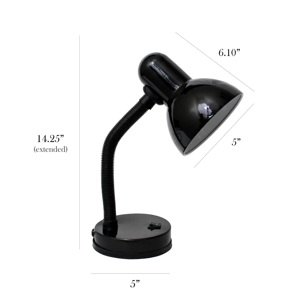 Simple Designs 14.25" Basic Metal Desk Lamp With Flexible Hose Neck, Black, With Led Bulb - Black