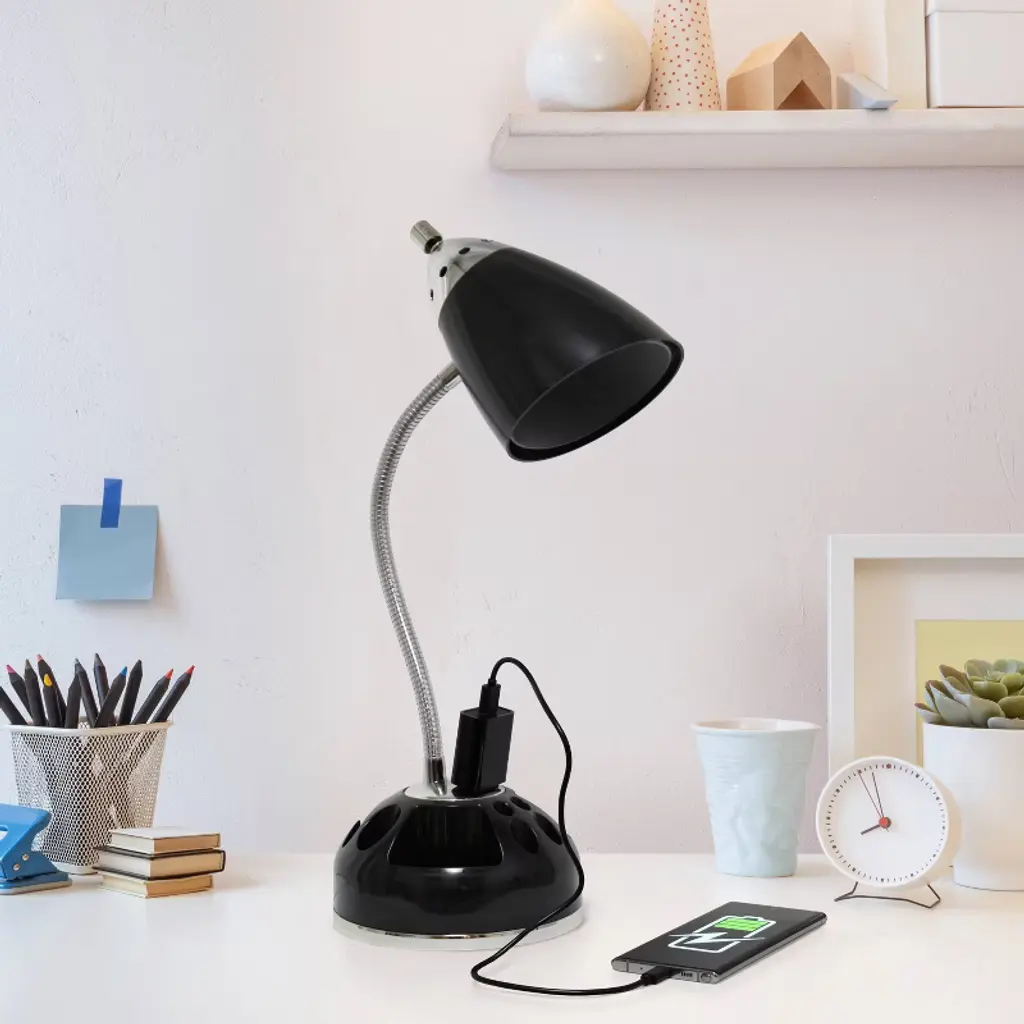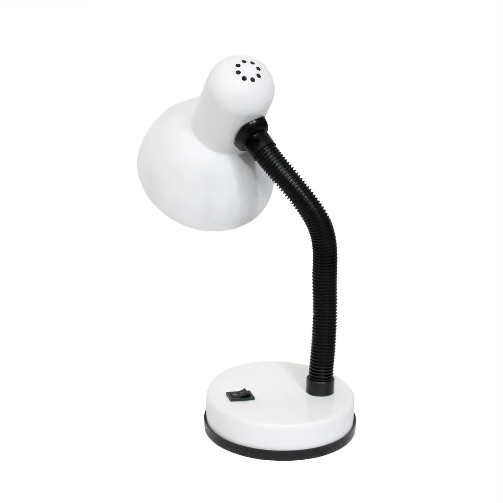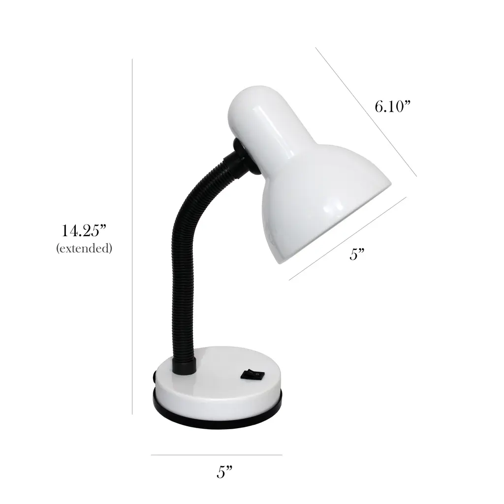 Simple Designs 14.25" Basic Metal Desk Lamp With Flexible Hose Neck, Black, With Led Bulb - White