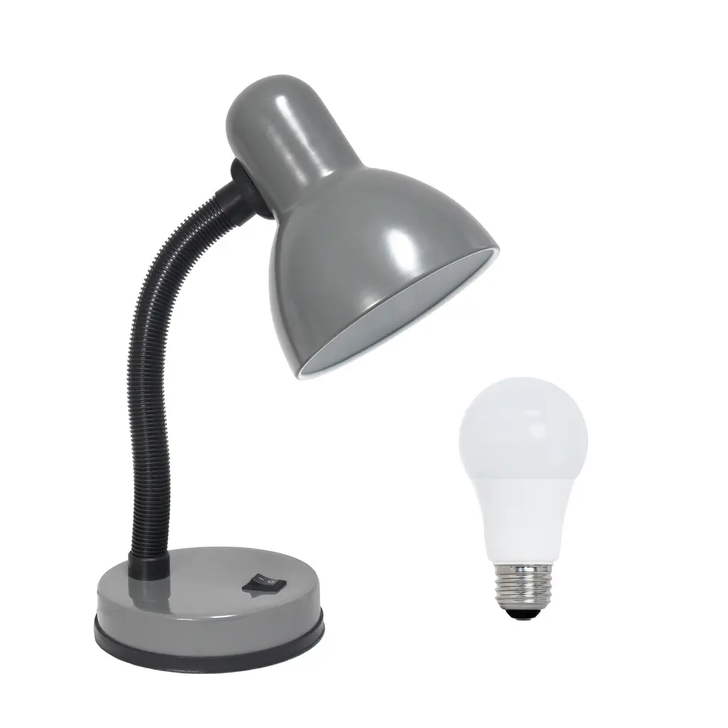 A nice, low-cost, and functional desk lamp to meet your basic lighting needs. This desk lamp features a painted plastic base and metal shade, an included LED bulb, flexible hose neck, and ON/OFF switch located on the base for your convenience. Perfect for office, kids room, or college dorm!
