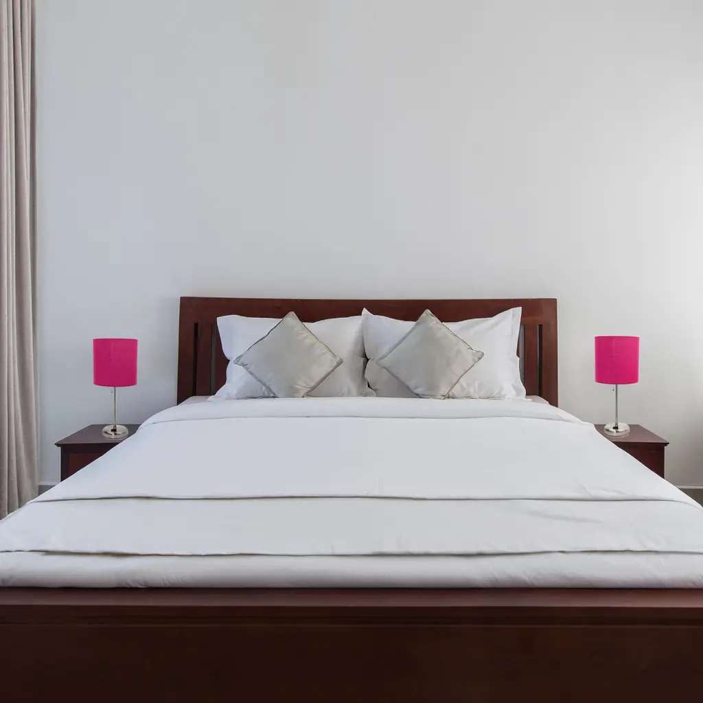 This fun and fashionable lamp set features 2 white bases and a pair of aqua fabric shades. Each come equipped a 2-prong outlet seated in the base for use to charge mobile phones, handheld games, tablets, and other small electronics. These lamps will add a fabulous flair to any room. Perfect for bedrooms, kids and teens, college dorms, nurseries, or fun offices! Features: