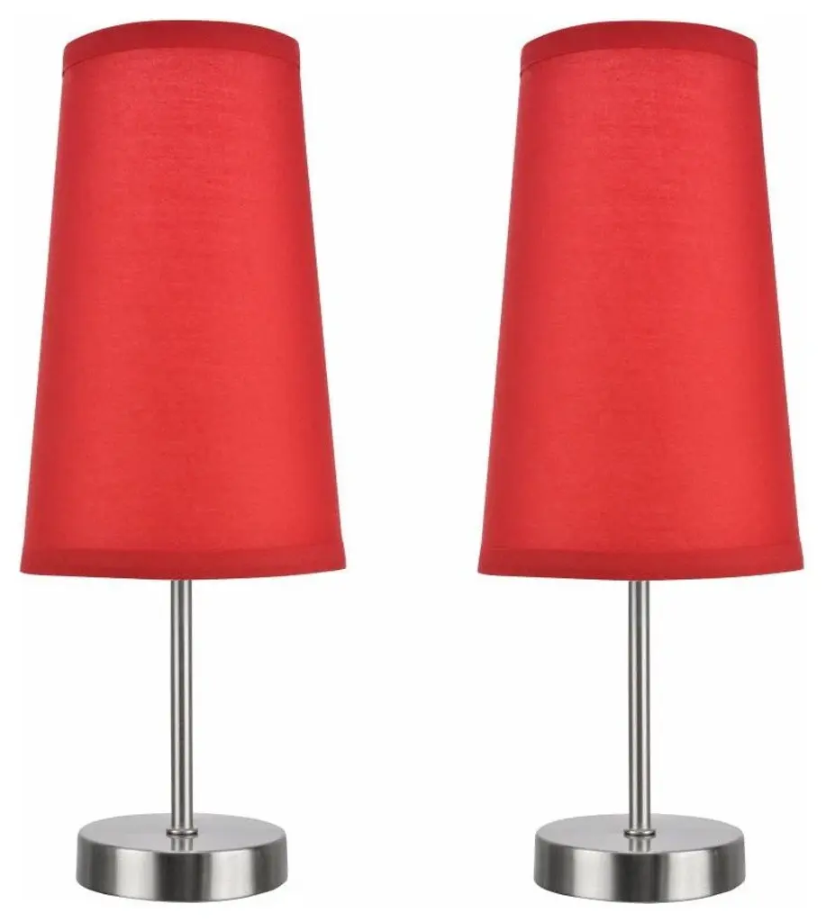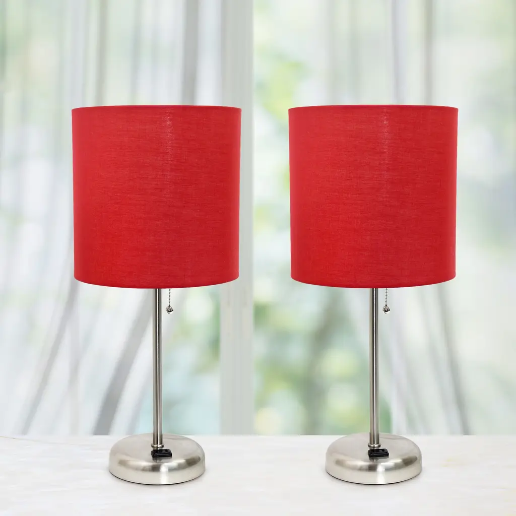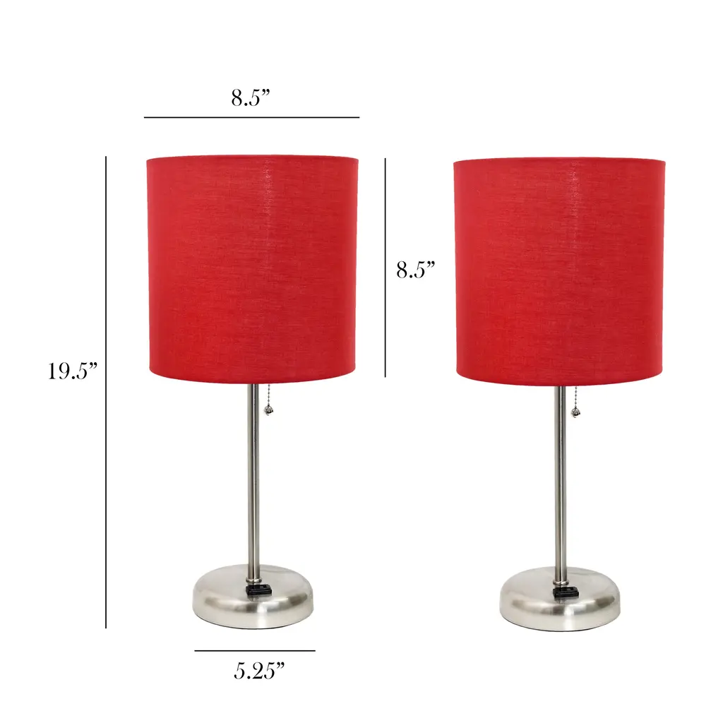 Simple Designs 19.5" 2 Pack Table Desk Lamp Set With Charging Outlet - 19.50 - Brushed Steel/red Shade
