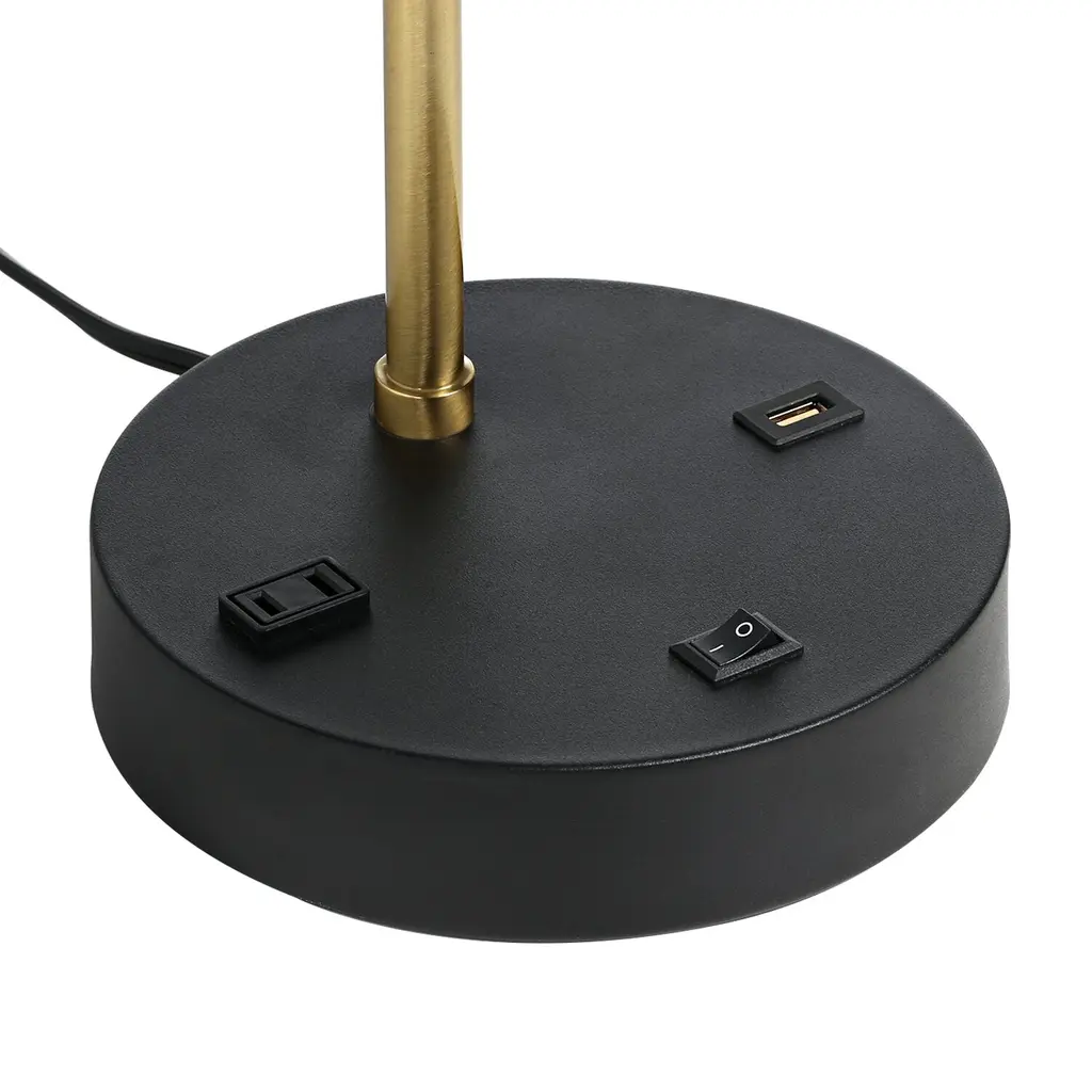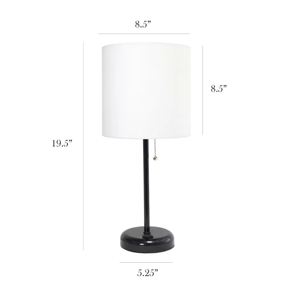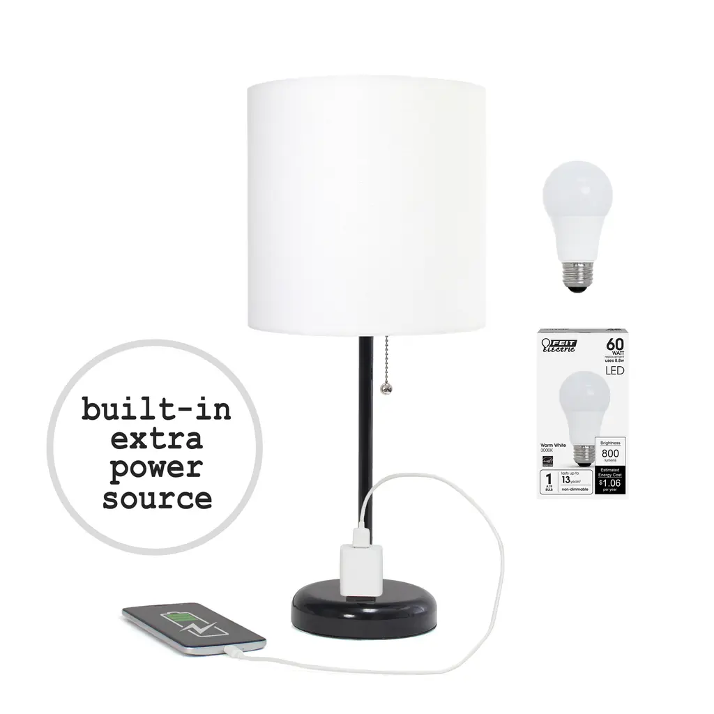 Simple Designs 9.5" Desk Lamp With Charging Outlet And Led Bulb Included - 19.50 - Black/white Shade