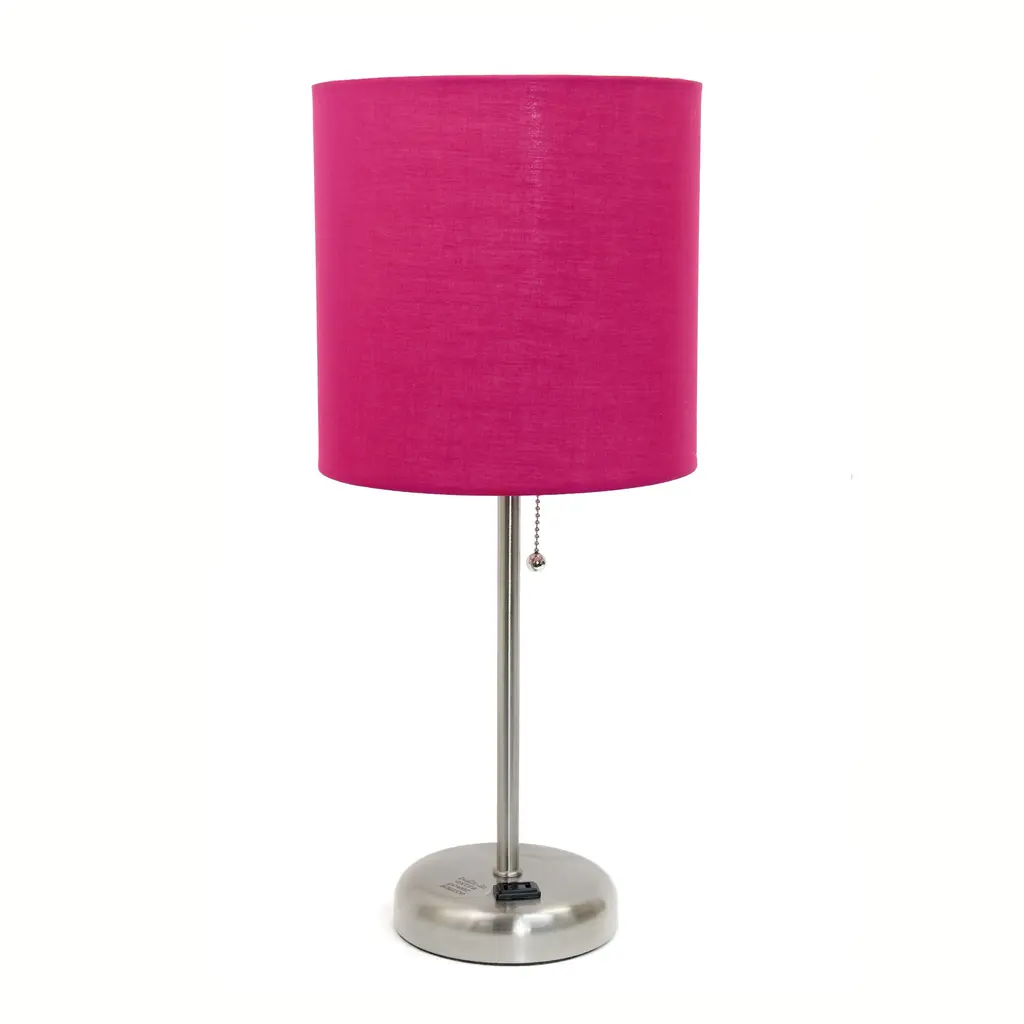 Simple Designs 9.5" Desk Lamp With Charging Outlet And Led Bulb Included - 19.50 - Brushed Steel/pink Shade