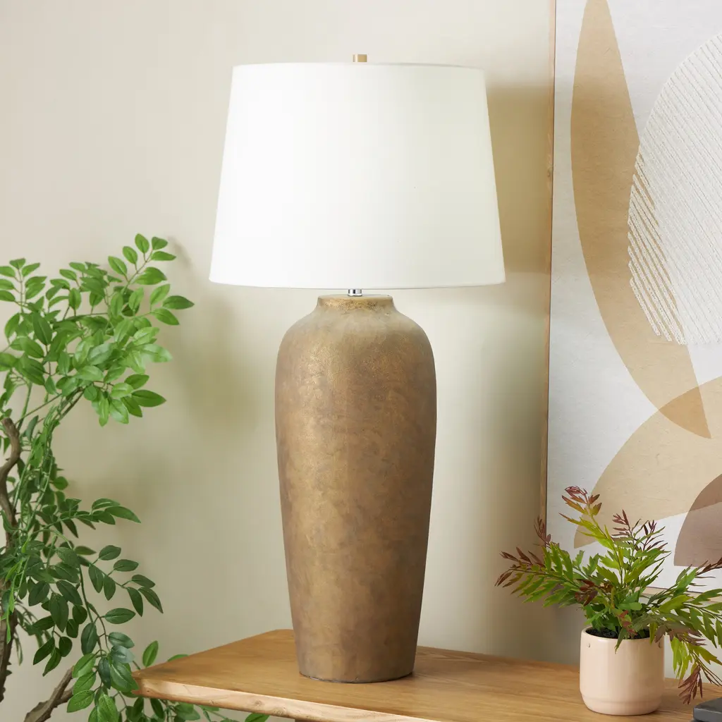 Simple Designs Tapered Desk Lamp With Fabric Drum Shade Gold: Etl Listed, Metal Body, Silk Shade