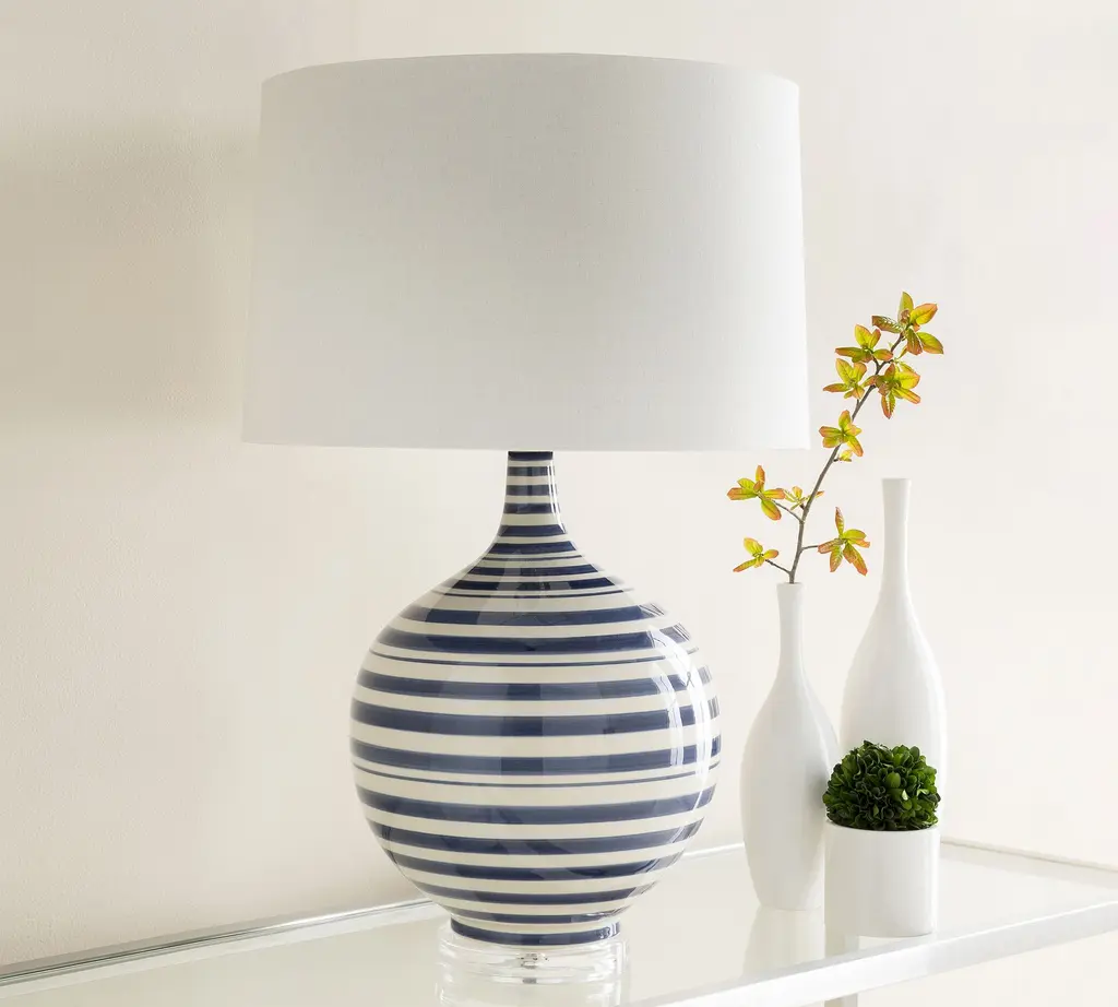 This fun and fashionable 21" desk/task lamp features a gold metal base and polka dot fabric drum shade making it the perfect addition to your lighting needs. This lamp will add simplicity and style to any space in your home. Perfect for bedrooms, kids and teens, college dorms, nurseries, or fun offices!