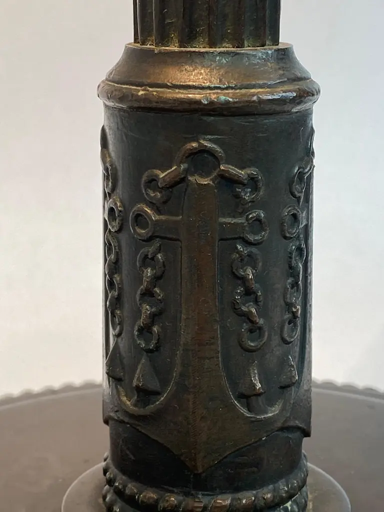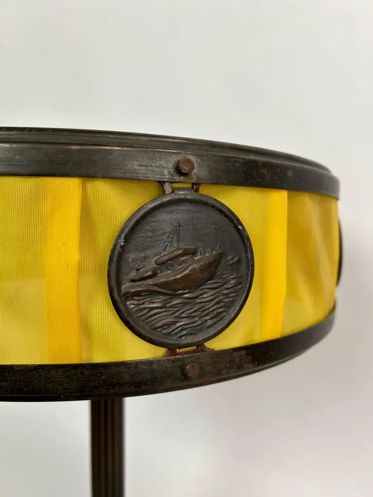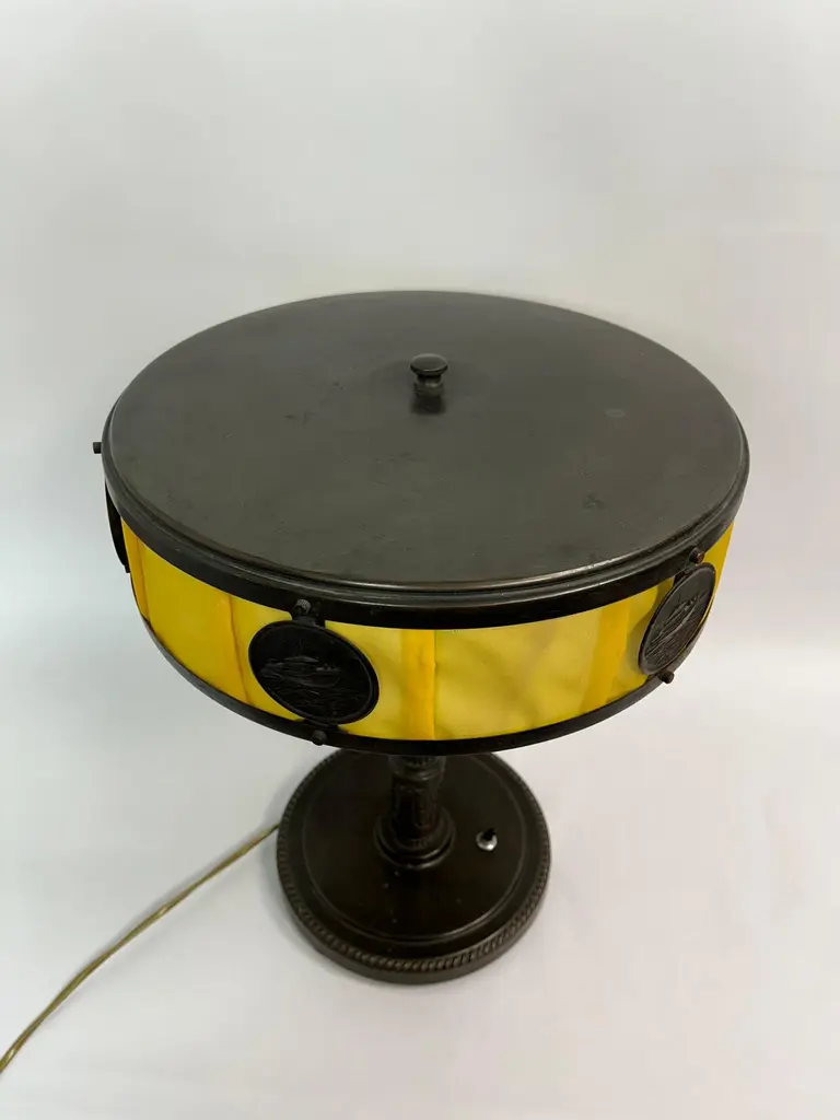 Soviet admiral desk lamp with yellow fabric. Very same lamp with green fabric is located in Stalin's bunker in Samara.