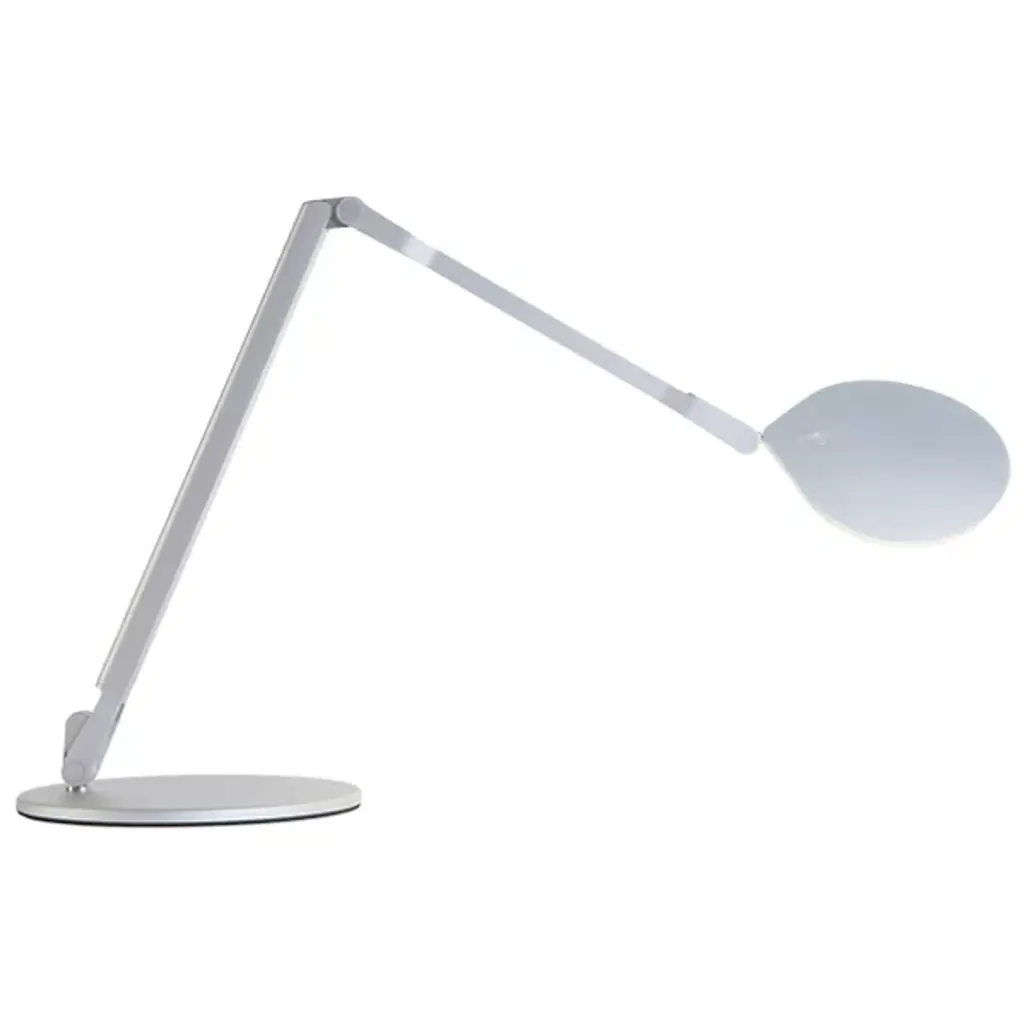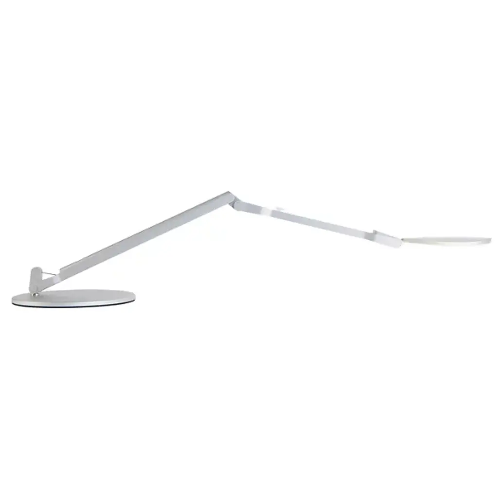 Inspired by water droplets' fluid, organic shape, the Splitty Reach Pro Gen 2 LED Desk Lamp from Koncept offers unmatched flexibility and motion. Its curved LED head reflects this design inspiration, allowing each model to be adjusted in virtually endless ways, making it one of the most versatile lights available. With a wide LED head, it provides an even glow across surfaces. Designers Kenneth and Edmund Ng skillfully hid the LEDs, creating a light that serves as both radiant ambient lighting and a practical task light.