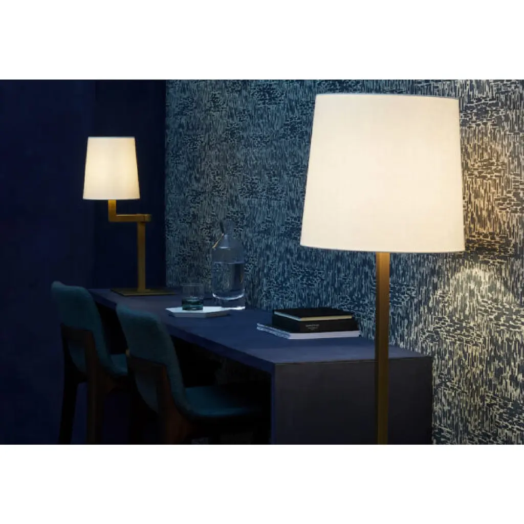 Elevate your workspace with the Tapered Drum Desk Lamp by Contardi Tonda. The sleek circular base exudes modern simplicity, while the white cotton or Calacatta marble lampshades add a touch of luxury. Customize your lamp with colored trims to truly make it your own. Bring elegance and refinement to your office with this timeless piece.