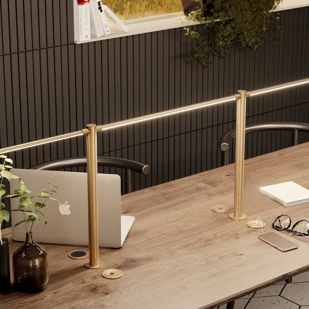 For an ideal lighting solution for office and workspaces, Juniper and designer Peter Bristol draw inspiration from old library desk lamps. Shared, an extension of the Thin series, is an inimitable lighting solution for a doubled-up workspace or to inset into a tabletop for a reduced footprint. Interconnecting and dimmable LED segments rotate to reposition the light and and the segments can be combined, up to 3 units on a single power supply. And the lamp is fully compatible with Juniper's built-in Ground Control accessories.