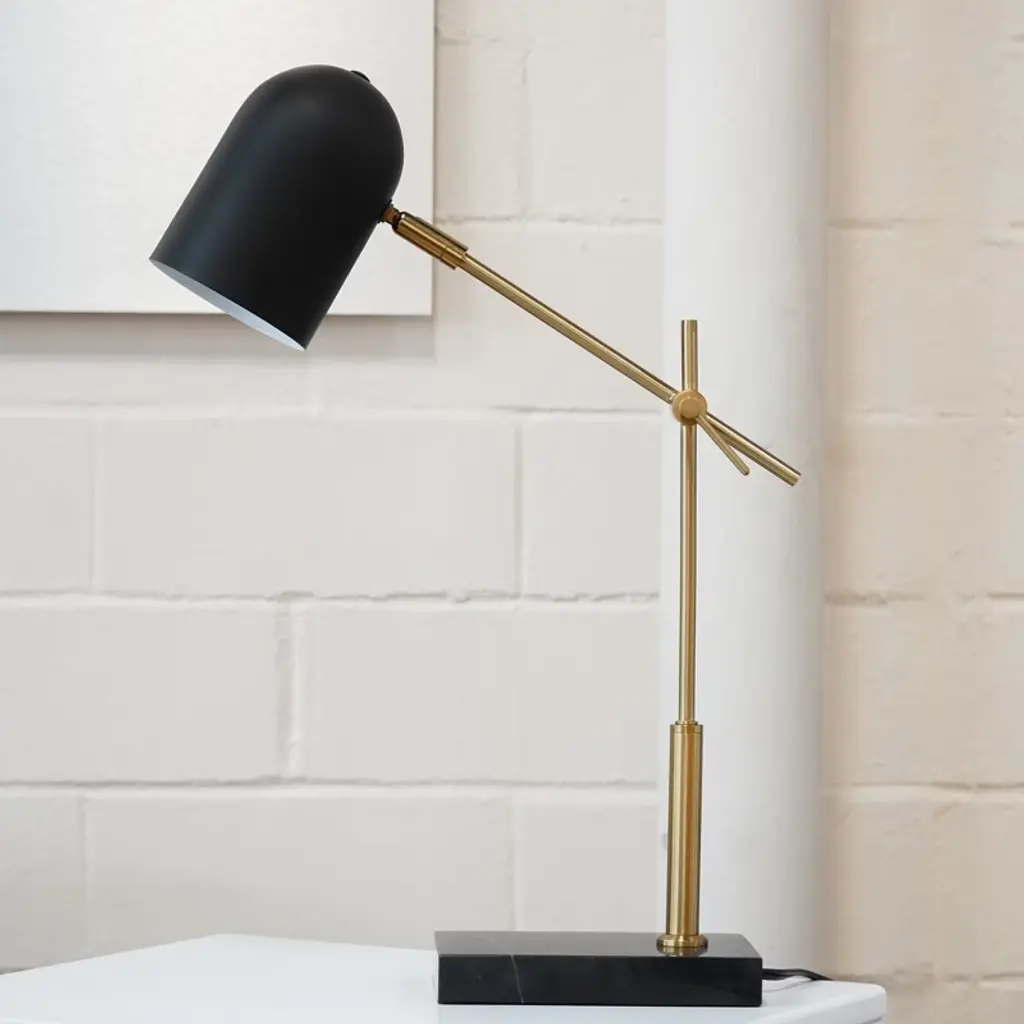 Base Material: Sturdy Black Marble Base for added eleganceShade Colors: Striking Black Outer Shade paired with a White Inner ShadeShade Shape: Dome design for a contemporary lookSwitch Type: Convenient In-Line Switch for effortless operationPower Cord Color: Classic Black for a polished finish