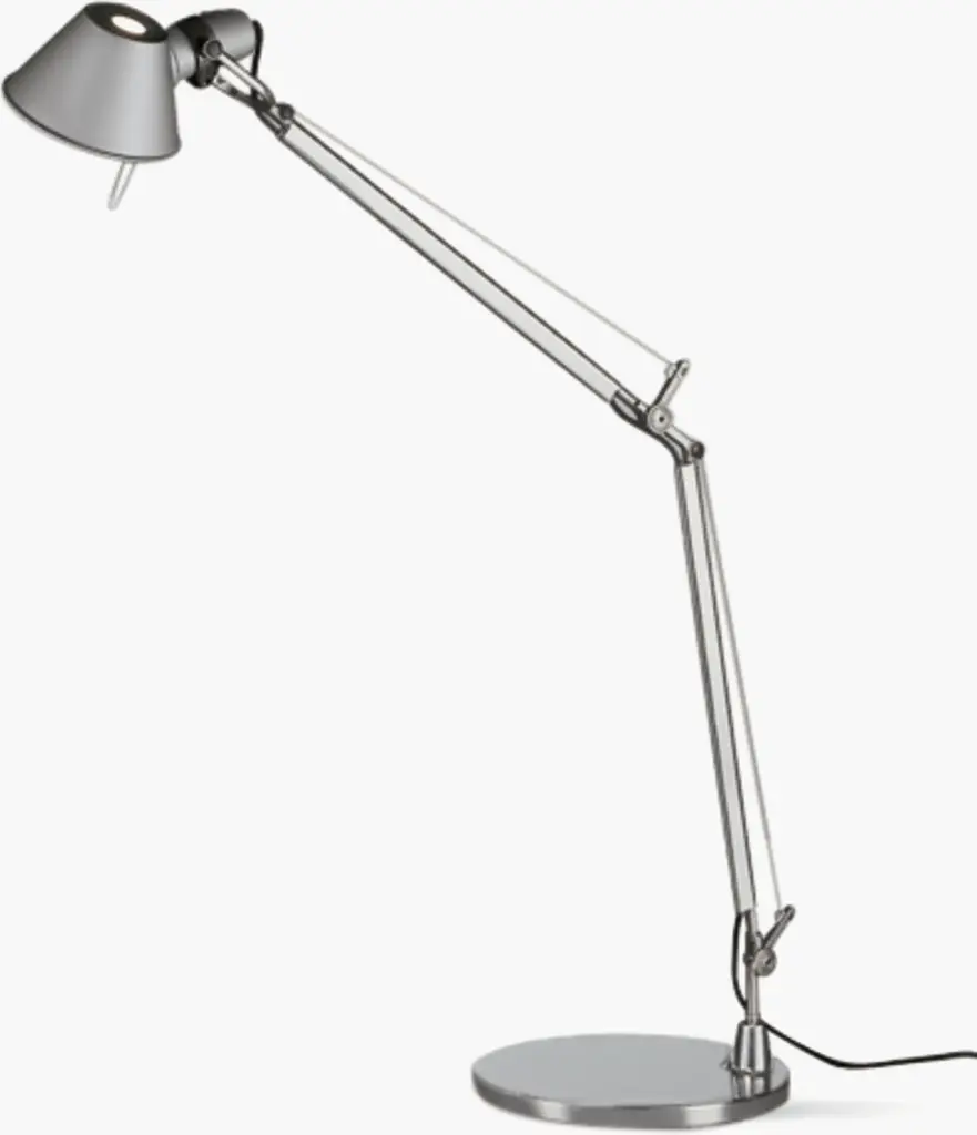 Rather than develop his career within a single design discipline - be it industrial, furniture, interior, lighting or architectural design - Michele De Lucchi chose to move freely among them all, creating door pulls for Valli Colombo, laptops for Olivetti, and tape dispensers for Pelikan while designing banks in Germany and apartment buildings in Japan. His Tolomeo Lamp (1987), designed in collaboration with Artemide's R&D department head Giancarlo Fassina, was honored with the Compasso d'Oro Award in 1989, earning worldwide recognition for its perfect marriage of design and engineering. Since then, the Tolomeo Collection has grown to include an assortment of sizes and styles, each one beginning with a heavy base and ending with a fully adjustable pivoting head. In between, the multi-armed body is also fully adjustable, with steel tension cables providing infinite positions in which the lamp can be held. Bulb (not included): incandescent 100W/E26/A19 for Standard and Mini sizes; incandescent 60W/E12/A19 for the Micro size. The Standard size is also available with an LED array (included): 10.7W/3000K/80CRI. UL Listed. Made in Hungary.