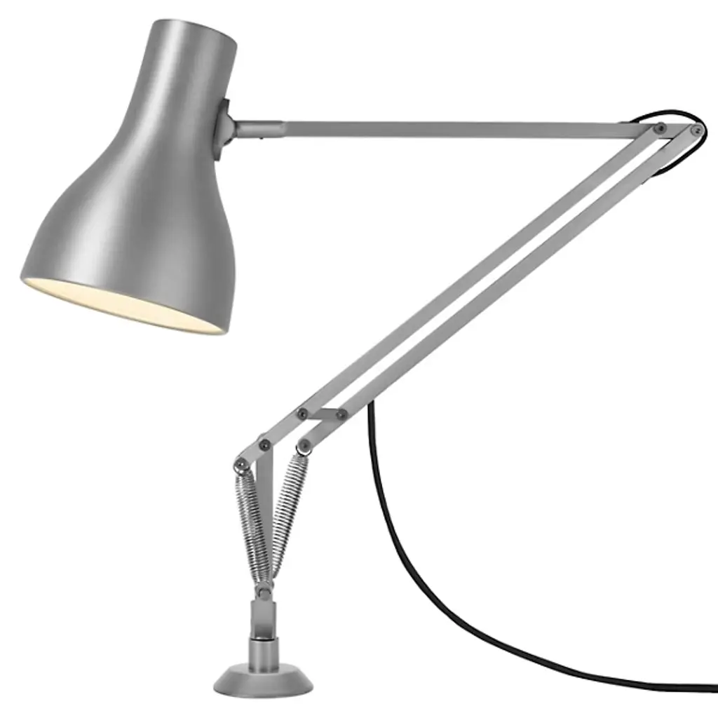 Finding space for the Anglepoise Type 75 Desk Lamp with Desk Insert at one’s workspace desk is a non-issue. The aluminum body of this fixture is slender and flexible without sacrificing durability, able to be bent and rotated in nearly any direction necessary thanks to the constant tension spring technology within. While being bent and adjusted in every direction, the silver painted insert base keeps it firmly in place. Providing direct task lighting, whether it be at home or at work, this desk lamp is nothing but helpful.