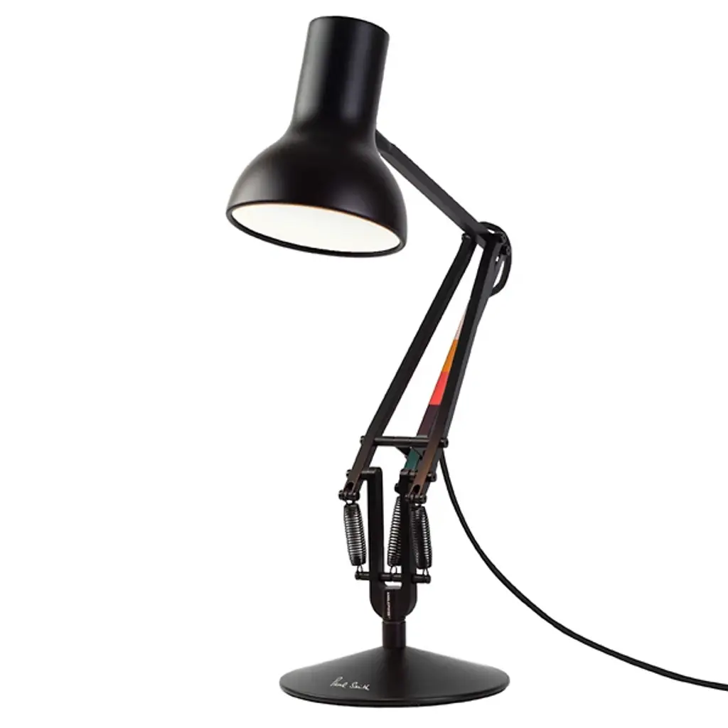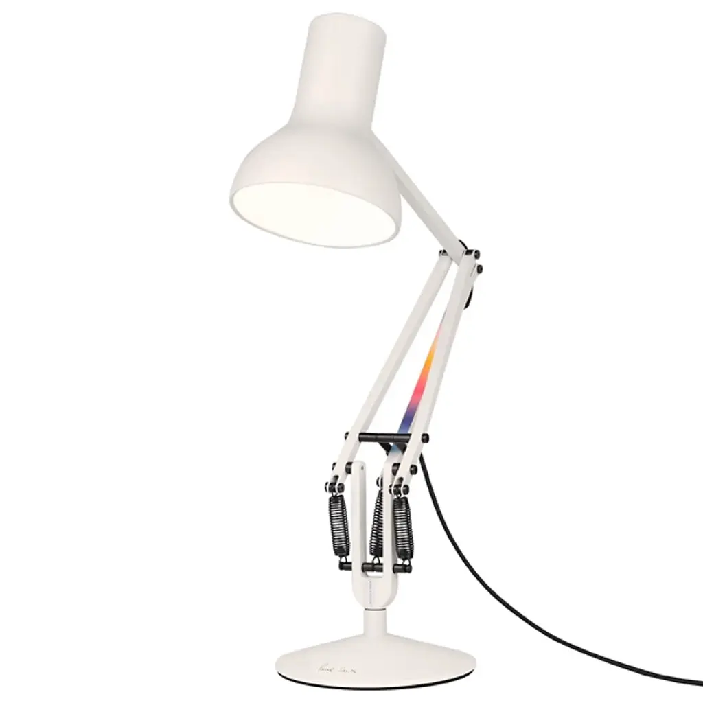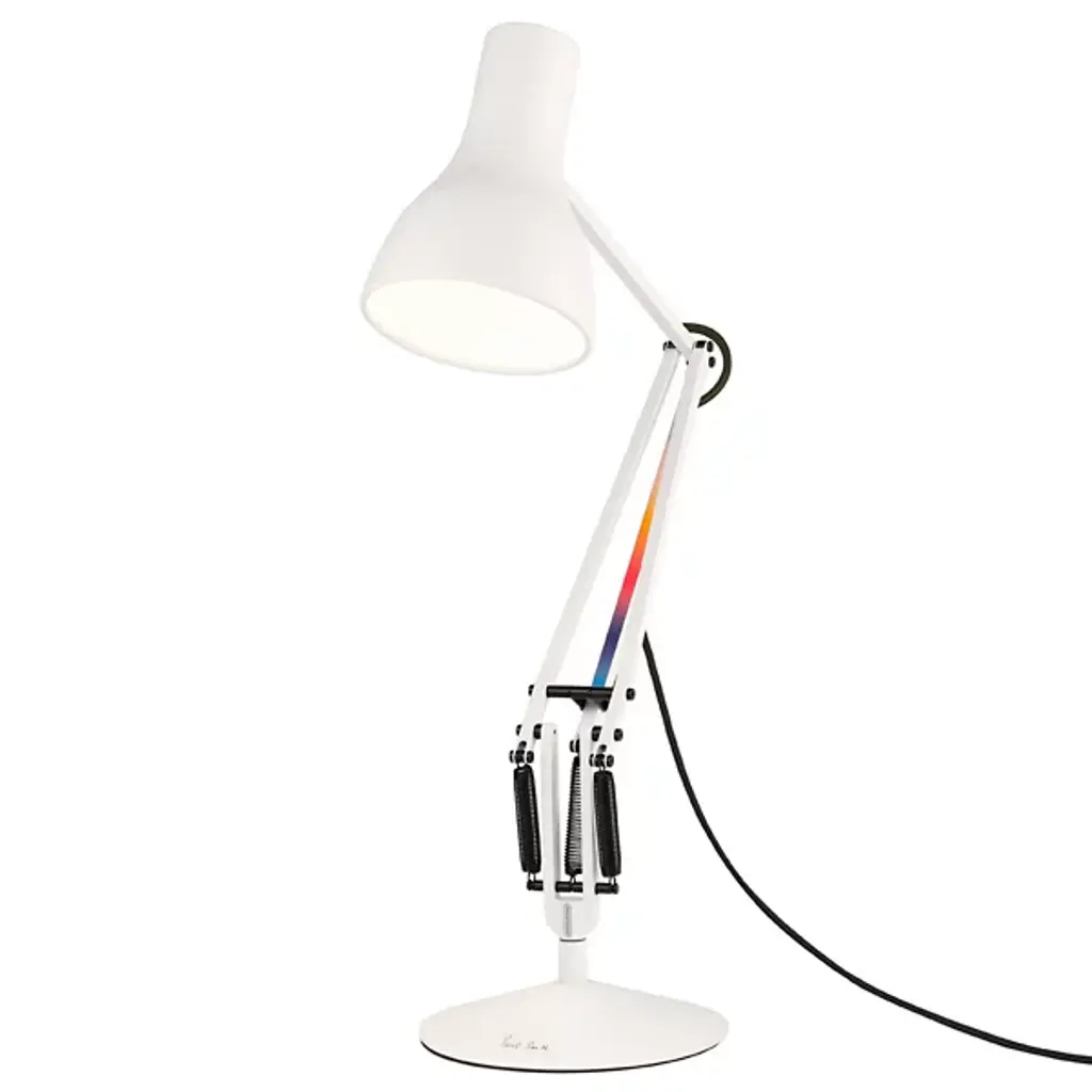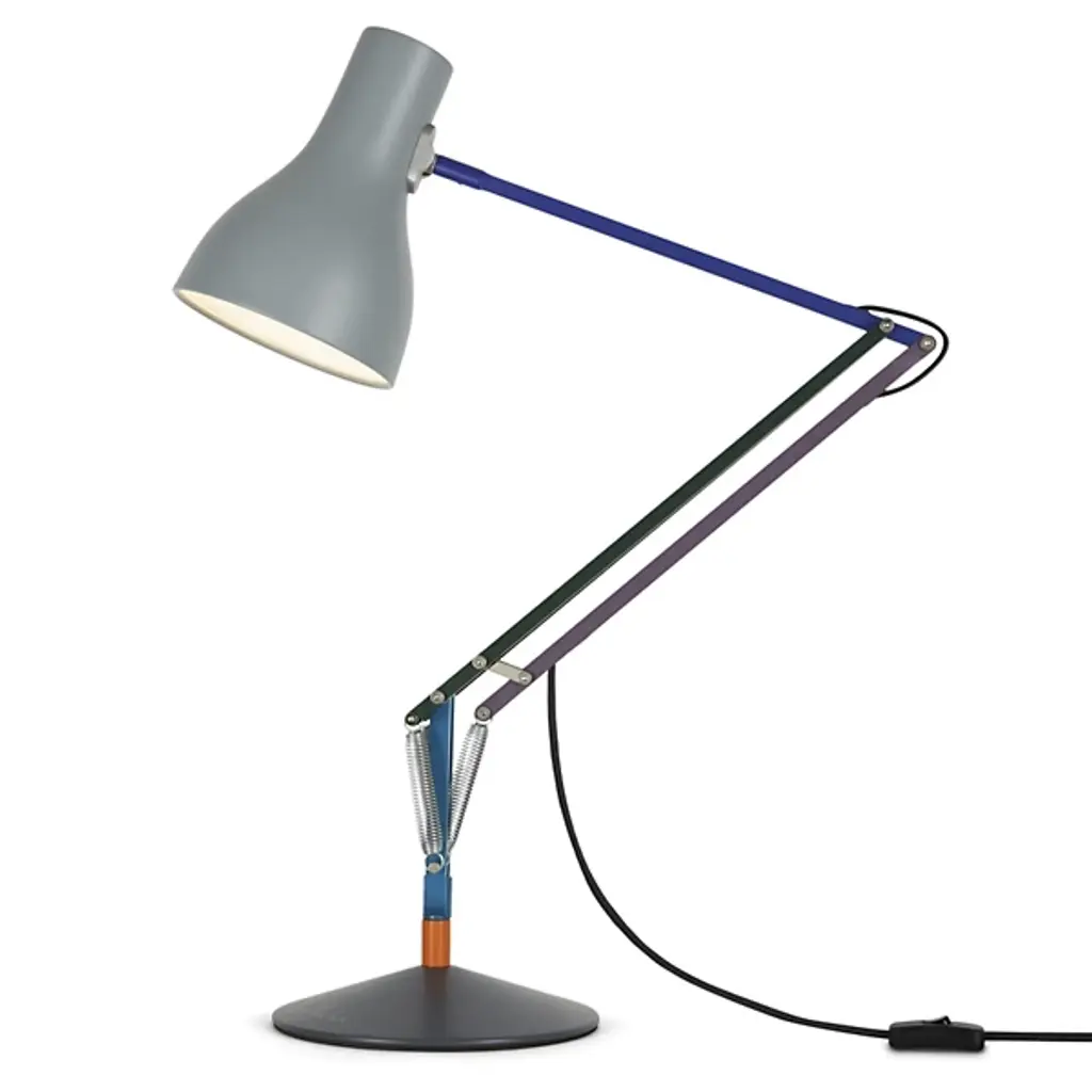 The industrial design expertise of Sir Kenneth Grange meets the color stylings of fashion designer Paul Smith, revamping the iconic Type 75 lamp in the Anglepoise Type 75 Special Edition Task Lamp. This special edition lamp stays faithful to the highly engineered original, but enhances its appearance with color schemes reminiscent of the De Stijl movement.