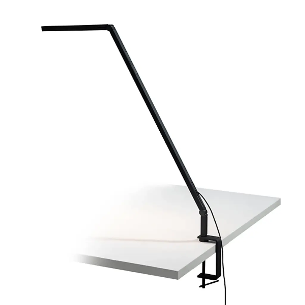 The Untitled Linear Mini LED Desk Lamp from Nemo is a delightful synthesis of minimalist design and refined mechanical engineering. A Bernhard Osann design inspired by his experiments with physics and geometry, its dynamic minimalism can adapt to any surface while connecting its users to their environment. A slim aluminum structure ascends from a square base, while miniaturized hinge joints keep the design clean and simple. A dimmer on the stem allows for custom lighting, courtesy of the efficient LED light set into the posable bar at the top, behind a technopolymer diffuser that produces a gentle glow.