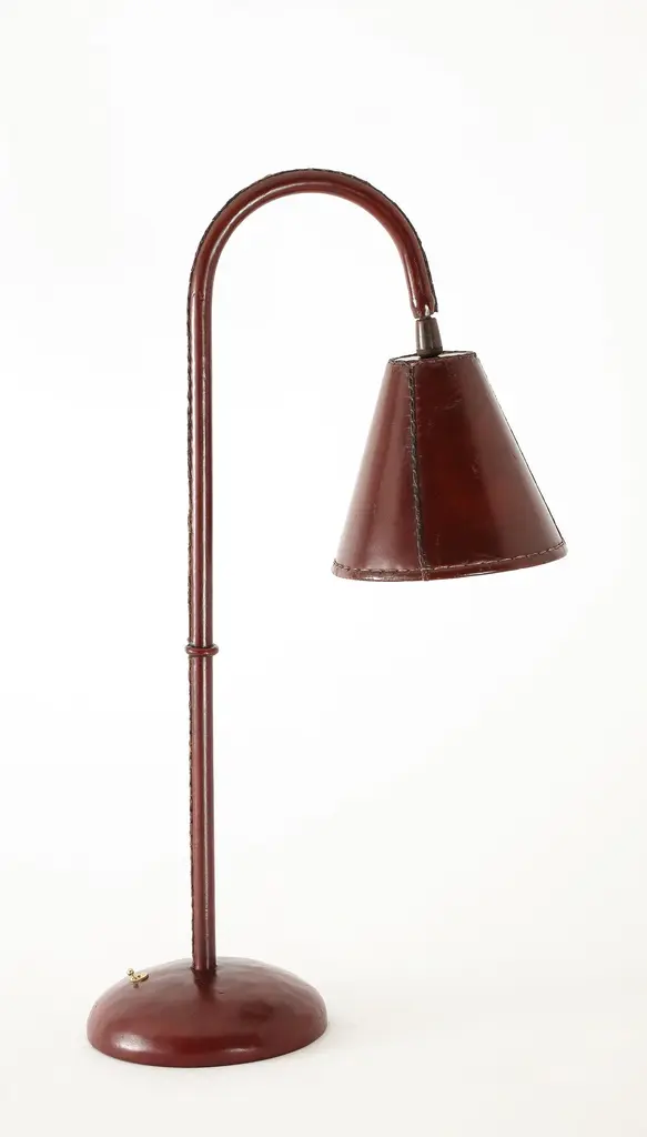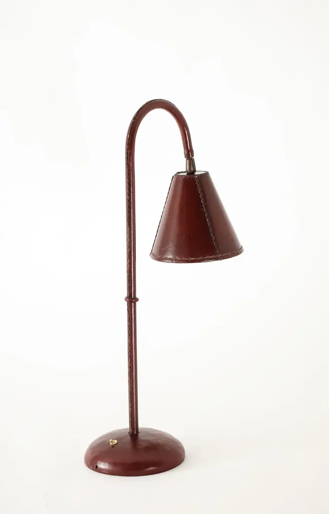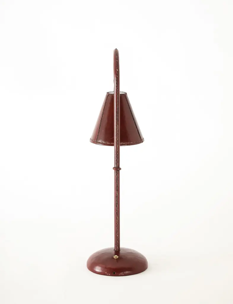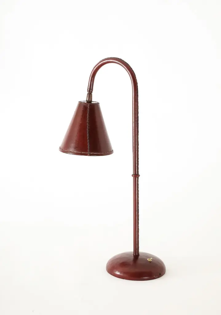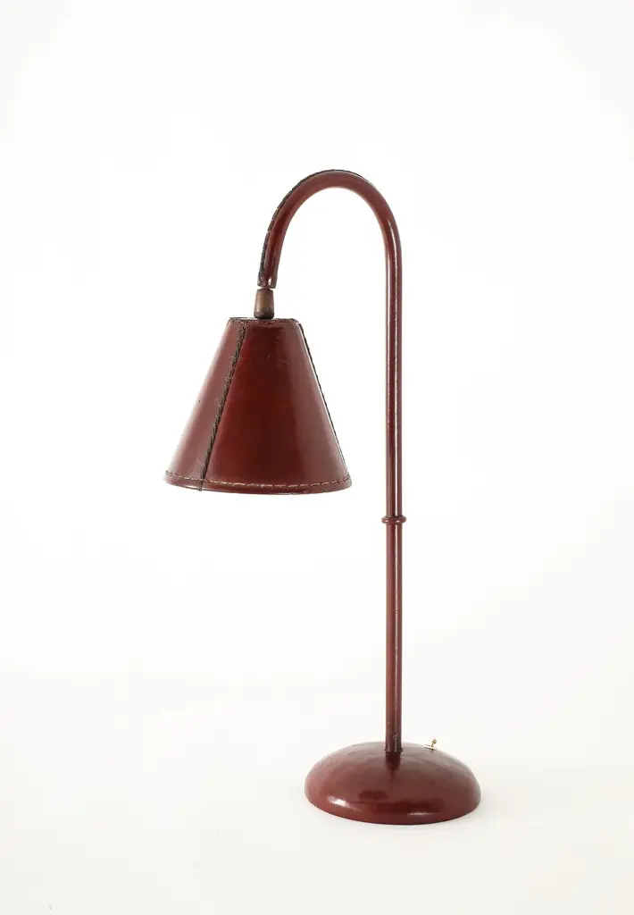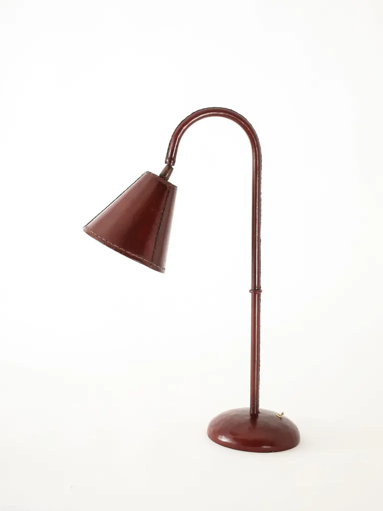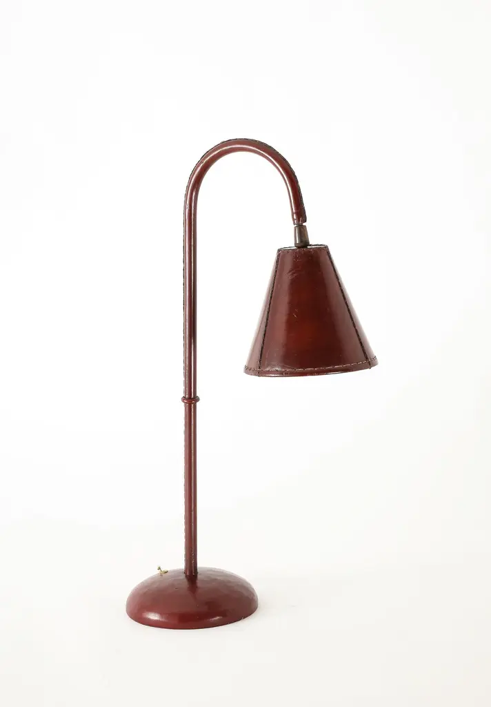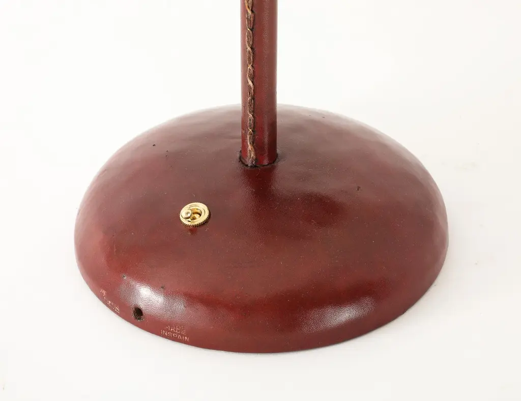 Valenti Desk Lamp In Burgundy Leather, Spain 1960's