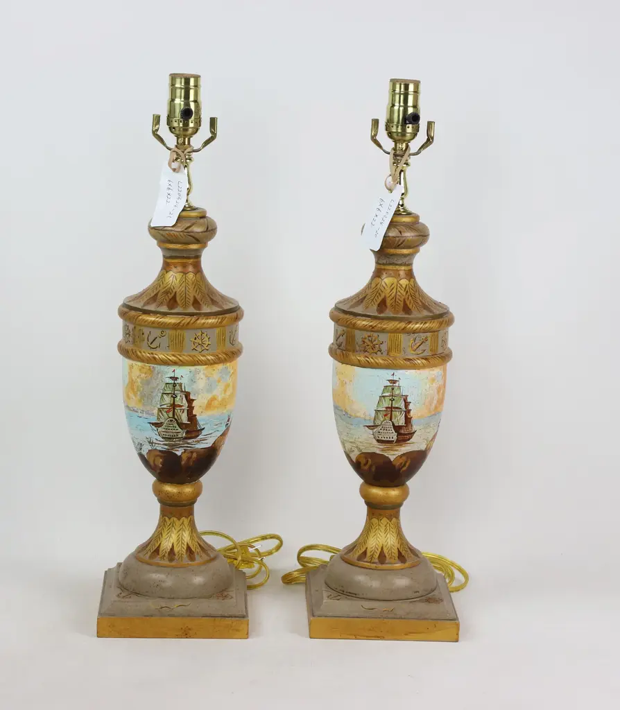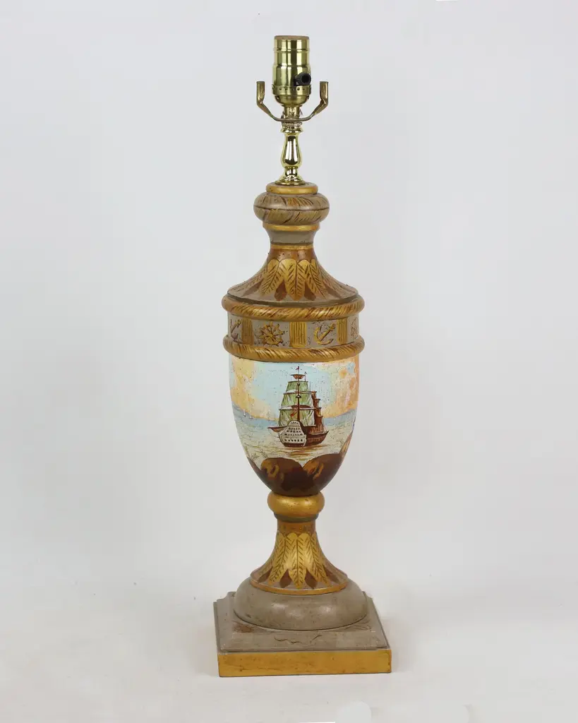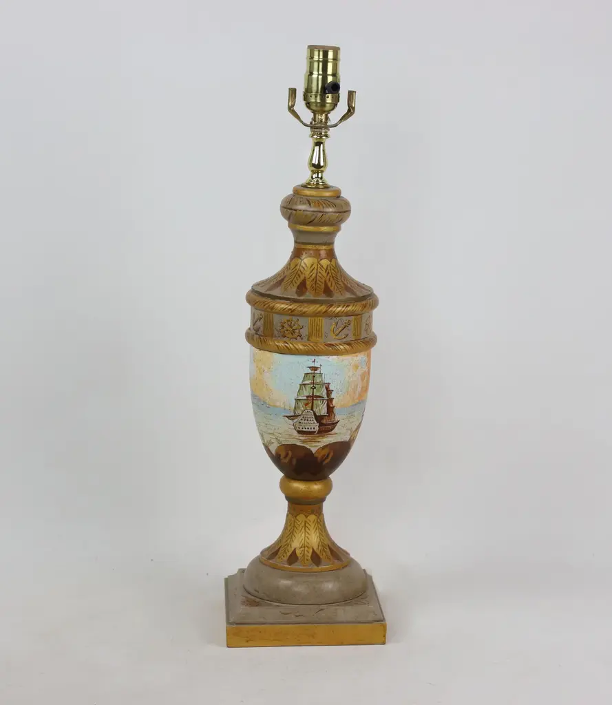 Vintage Hand Painted Nautical Pattern Desk Lamp