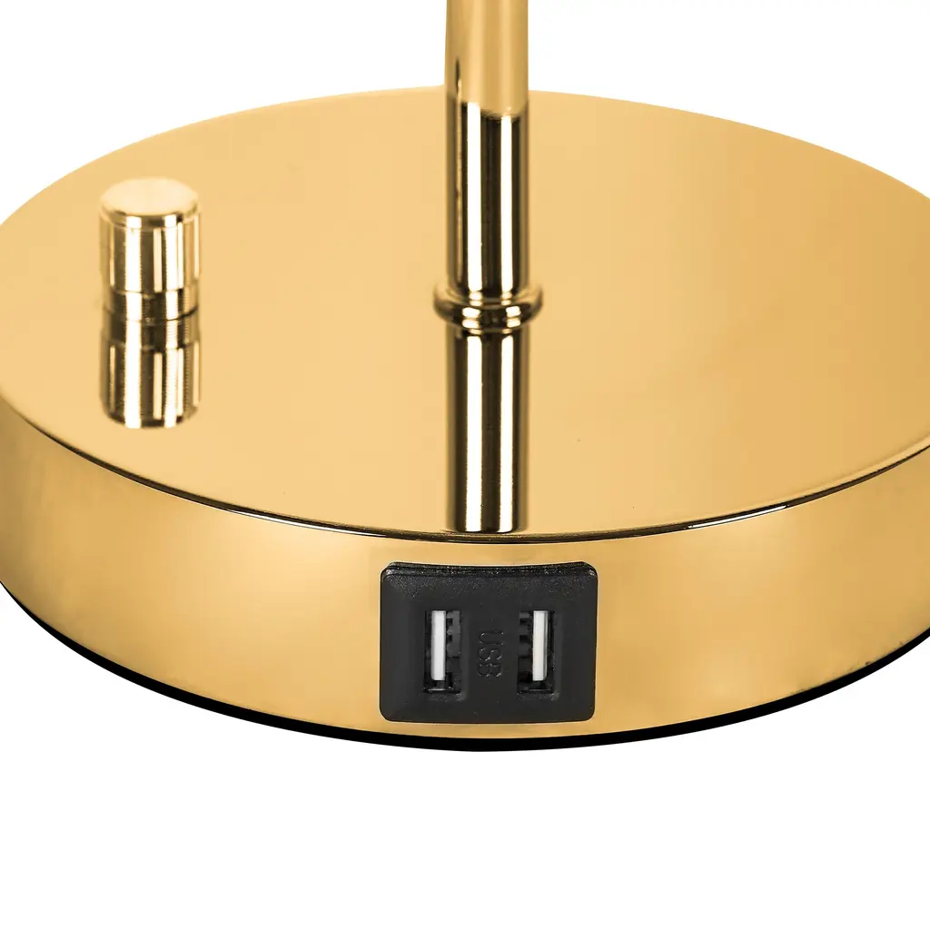 Yansun 1 Light Crystal Table Lamp With Dual Usb Charging Ports, Stepless Dimming,modern Bedroom And Desk Lamp - Gold