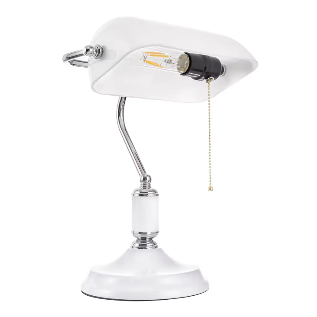 Illuminate your space with this stylish 10.4 in. white table lamp, designed to bring both elegance and functionality to any room. Crafted from a combination of durable metal and glass, this lamp features a sleek white exterior that blends seamlessly into various decor styles. Equipped with an E26 socket, it offers flexibility to use any compatible bulb of your choice (Light Bulb Not Included), providing a customizable lighting experience. Perfect for bedrooms, living rooms, and dining areas, this lamp is ideal for creating the perfect ambiance.