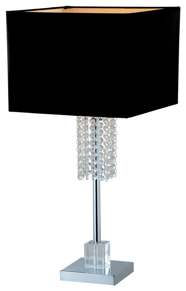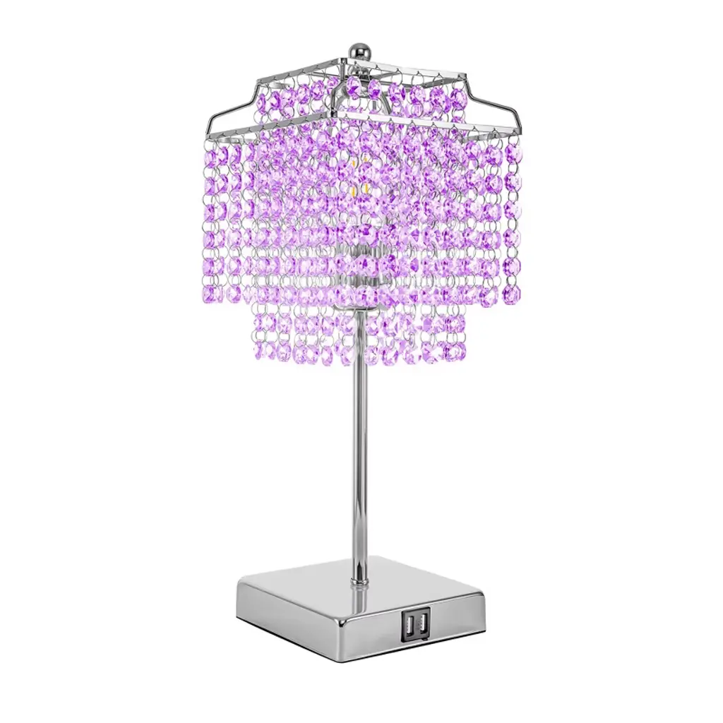 This table lamp features a refined chrome base paired with a clear crystal body for an elegant and timeless look. It includes a built-in USB port and stepless dimming to enhance convenience and atmosphere. The classic silhouette fits effortlessly into bedrooms, living rooms, or home offices.
