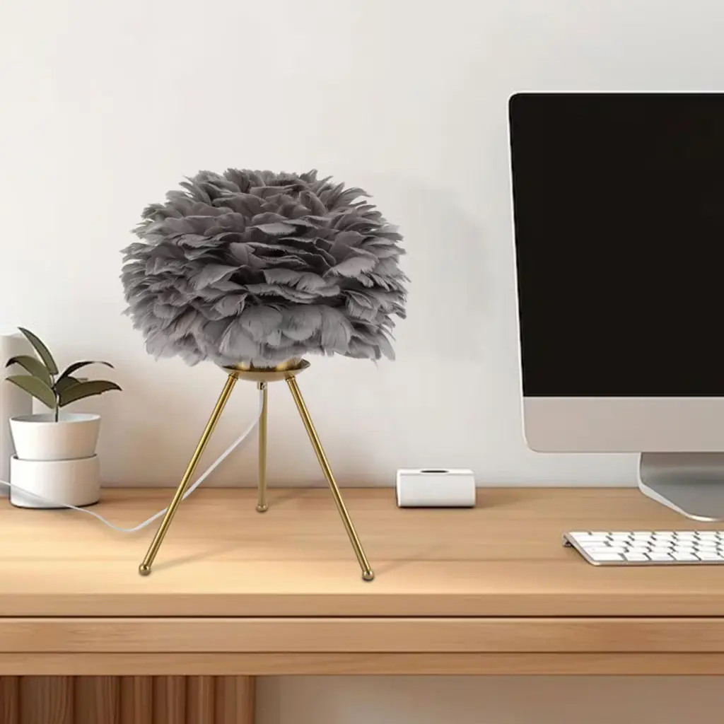 Yiyibyus Gray Feather Lamp Tripod Lamp, Desk Lamp Unique Bedside Lamps