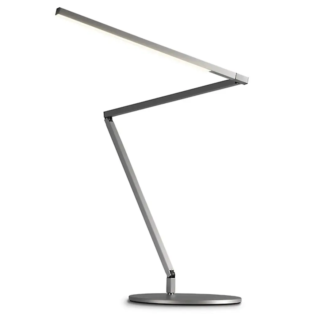 The Z-Bar Gen 4 Pro LED Desk Lamp from Koncept represents designer Peter Ng's exploration of mechanical articulation in task lighting. Ng engineered a highly adjustable head that spins within its socket, sweeps along the arm, and rotates at the joint for multidirectional positioning. A touchstrip dimmer located near the LED source provides fingertip brightness control, allowing users to shift between ambient and focused task levels. The design prioritizes flexibility through its jointed arm structure, giving the lamp a technical character suited to workspaces requiring precise light placement and intuitive operation.