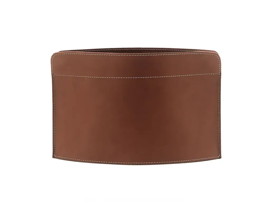 Leather-covered rigid openable pad of varying thickness with inner space for sheets.