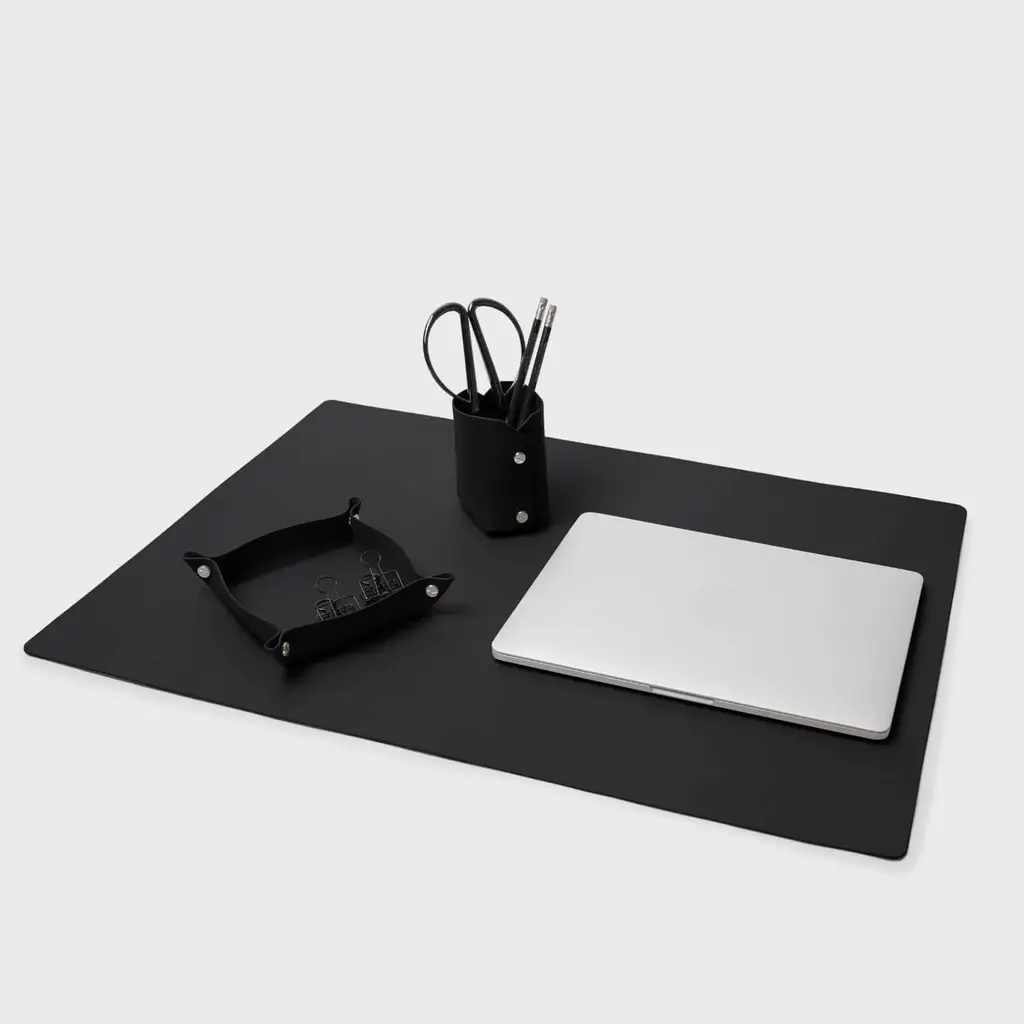 Our durable vegan leather desk pad transforms any surface into your office. Protect your tabletop from laptop scratches, heat, ink stains, and more and instantly make your desktop feel more put together. Our desk mat goes perfectly with our vegan leather storage boxes and folio collection.