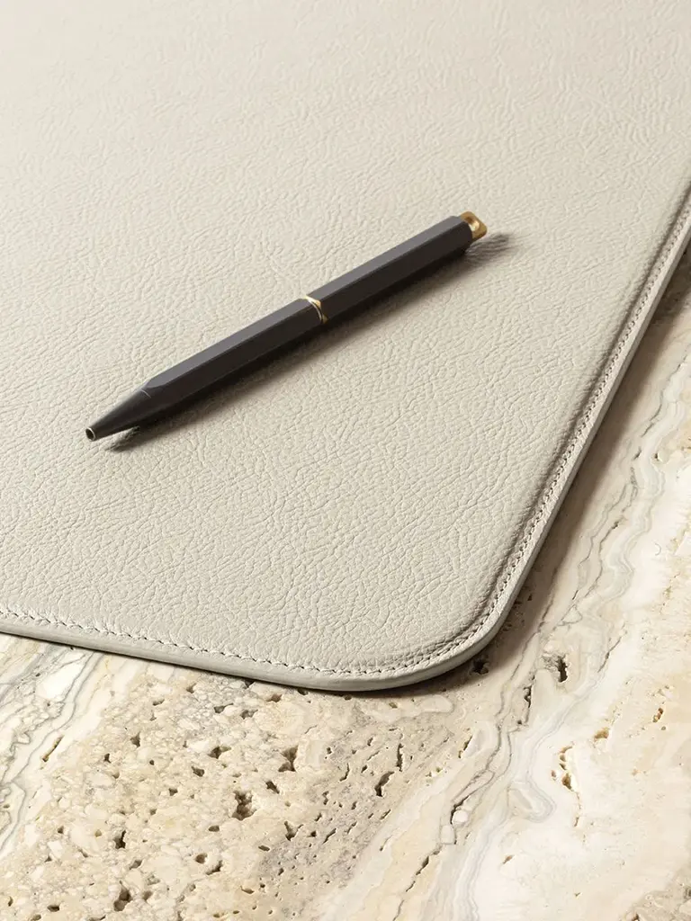 Giobagnara designs functional objects that optimize use of the mouse on desks. The desk pad, made of soft Pelle Frau® leather, serves as an elegant desk accessory, especially useful for signing documents or making handwritten notes. It is rectangular in shape with slightly rounded corners. It is available in a choice of colors.The Office Collection, created in cobranding with Giobagnara, is a family of coordinated accessories designed to make the office or workstation more practical and enjoyable. The meticulously finished objects, all upholstered in Pelle Frau® leather, add a touch of elegance to the office environment.