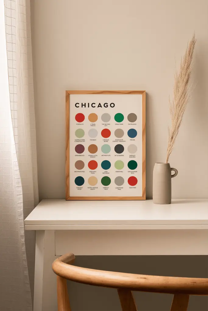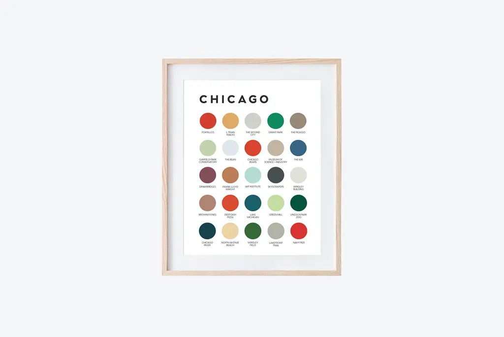 Part of a collection curated by Bon Femmes, the Chicago Color Palette Art Print by Lunch City Studio showcases a color palette view of iconic Chicago landmarks, perfect on its own or as part of your growing gallery wall.Details and product care +DimensionsMeasure for deliveryOverall8"w x 10"hCustomers love the Chicago Color Palette Art Print