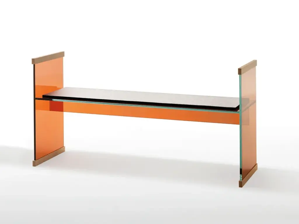 Born from a collaboration with Italian designer Davide Rizzo who curated a glamorous 3-piece collection of sophisticated pieces in collaboration with AVD, this desk redefines the 1970s vibe with a unique waterfall design that will blend seamlessly into any decor. MDF structure covered in natural raffia is enriched with a central mirror section in a modern shade of pink with a hidden front drawer made of walnut and a black nickel decorative accent on one side. A perfect combination of noble materials, this desk will be a statement piece in a private studio or as a contemporary vanity table in a bedroom.