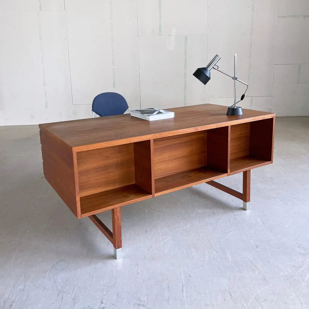 1960’s Ejgil Petersen EP401 Executive Writing Desk. Lockable drawers with original key. Three pull out drawers located on the seating side. Three book / decor shelves on the open side.Design: Ejgil Petersen, Denmark, 1968 (often attributed to Kai Kristiansen)Produced: Ejgil Petersen Möbelfabrik, Denmark, 1968 (No visible makers mark)Measurements: Width: 155 cm Depth: 75 cm Height: 72.5 cmCondition: Very good original condition with normal signs of use consistent with age (some lighter markings to tabletop as shown).