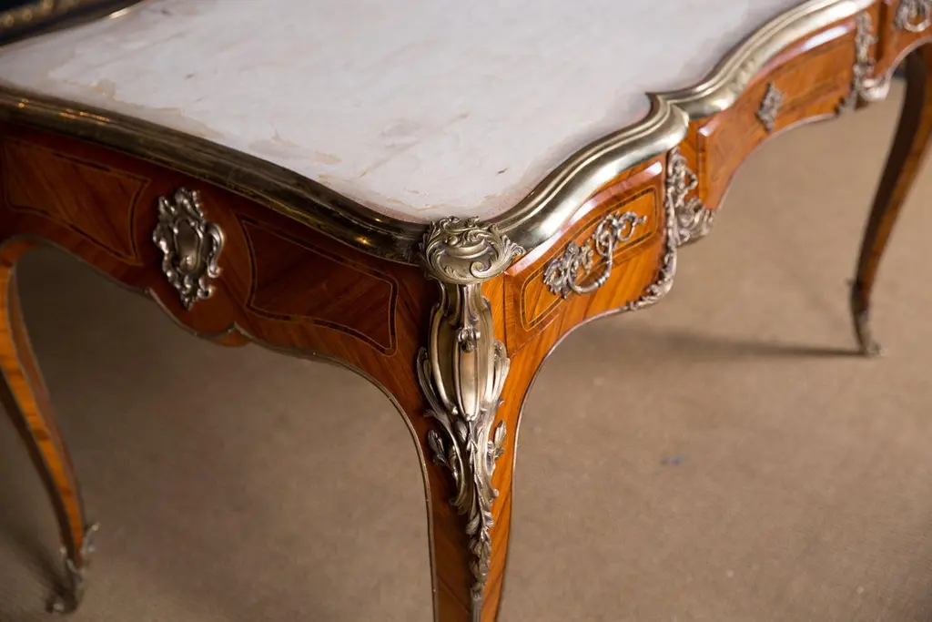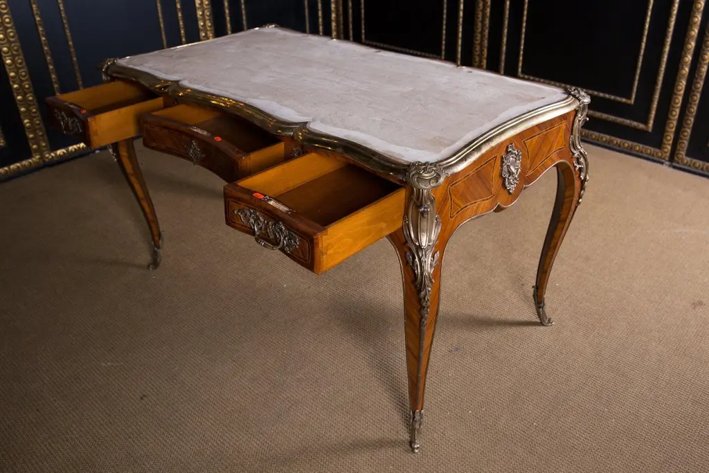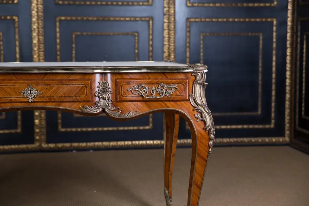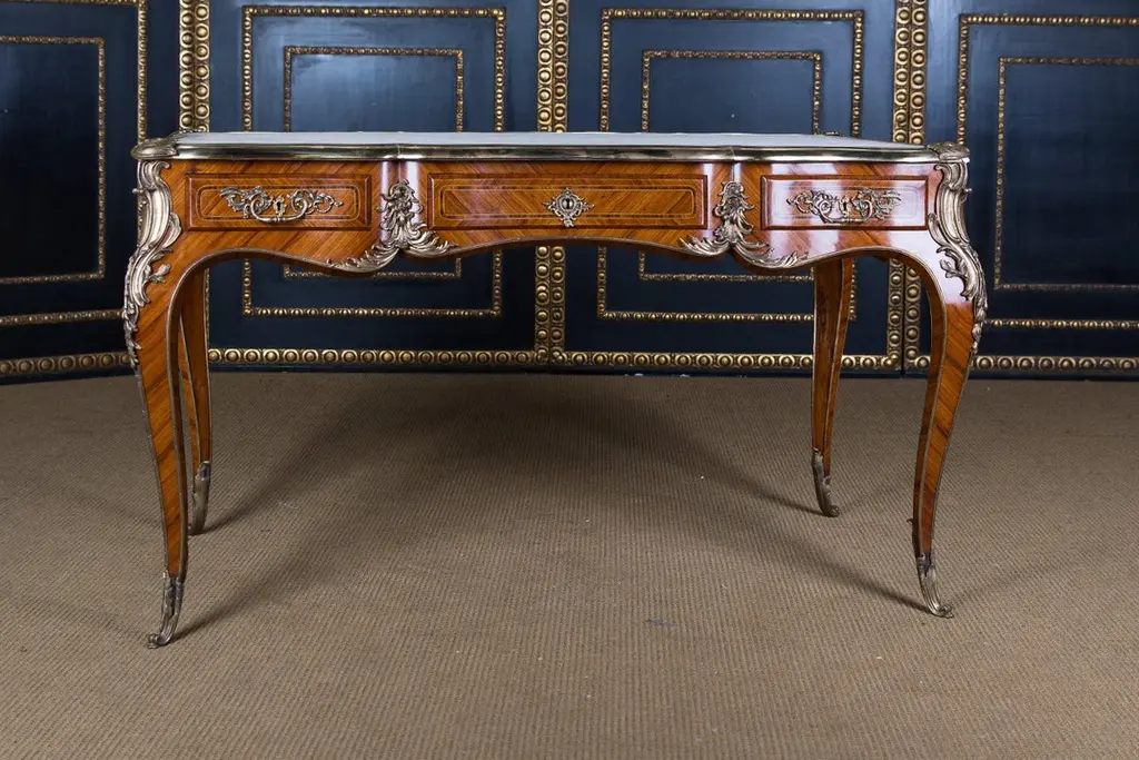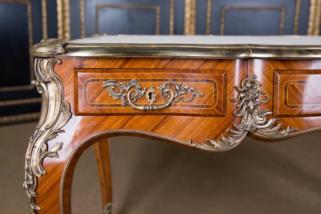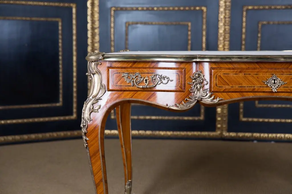 20th Century Desk Bureau Plat In Antique Louis Xv Style Mahogany Veneer
