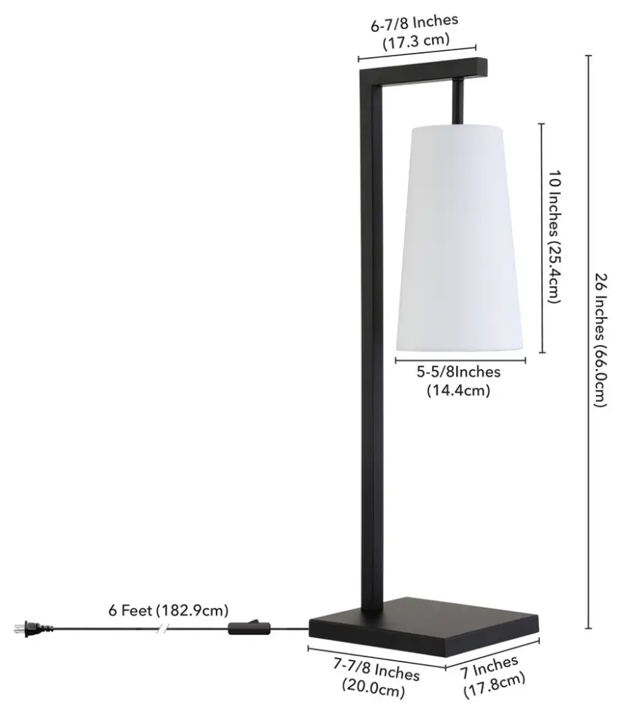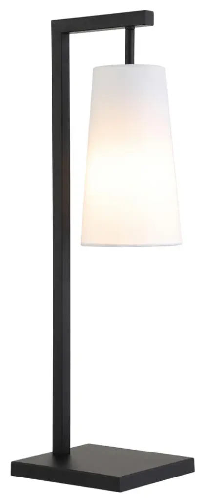 Embrace the good life with this hard working and stylish 26-inch black metal desk table lamp with white cone shade. The base of this lamp is made of metal finished in a black tone. The white cone fabric shade is finishes this piece off nicely and symmetrically this desk lamp provides ''task lighting'' that will illuminate your working area for reading or writing. Use this lamp anywhere and elevate the look of the whole space. Bring some lite and good vibes into your space with this updated and stylishly designed lamp. 26-inch H x 9-inch W x 7-inch D