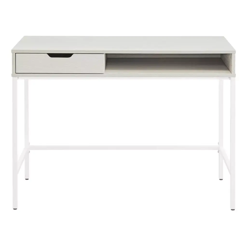 40" Contempo Desk With Drawer And Shelf White Oak - Osp Home Furnishings: Sturdy Steel Frame, Mdf Surface