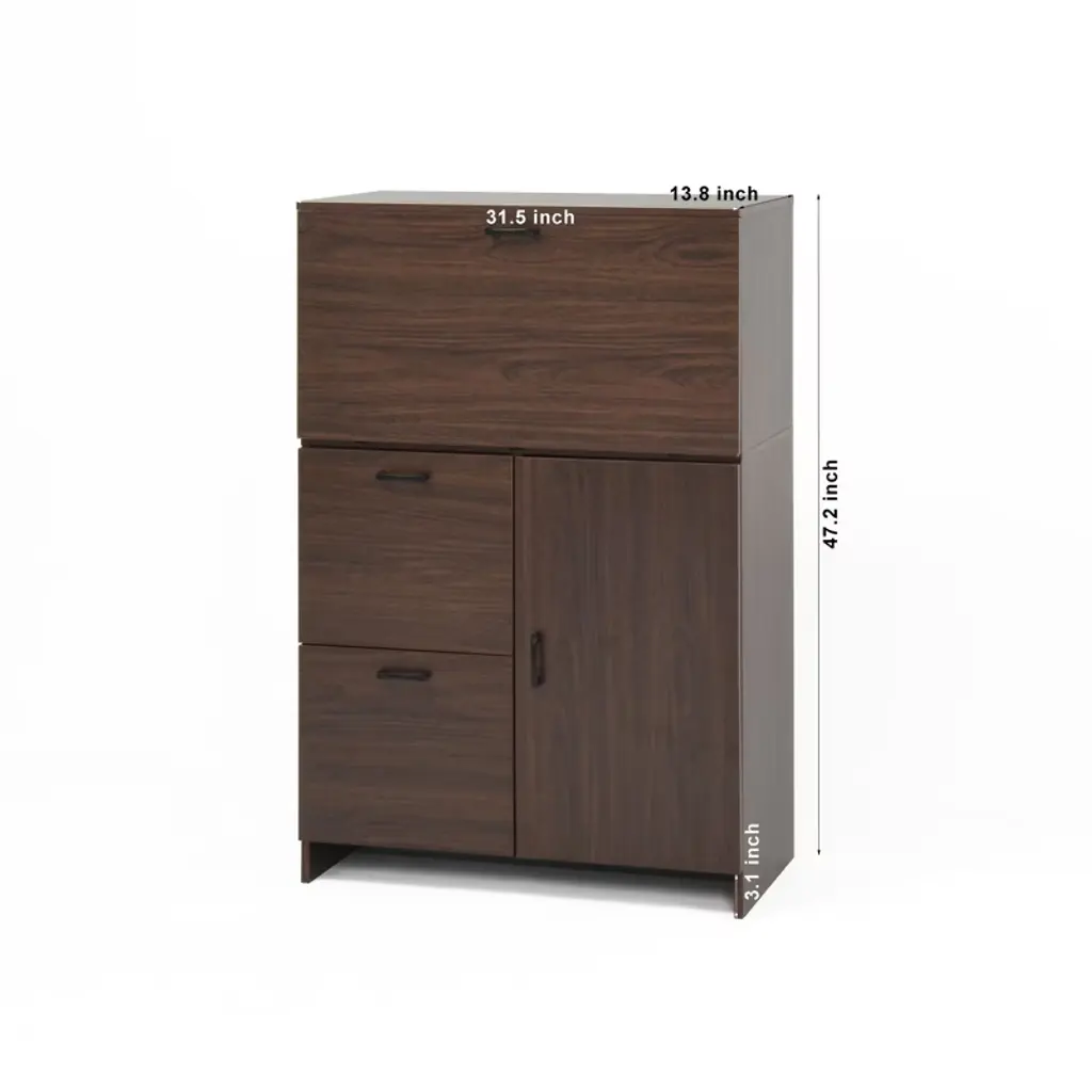 47.2-inch High Walnut Color Desk Cabinet With Storage Drawers And Shelves And A Foldable Tabletop