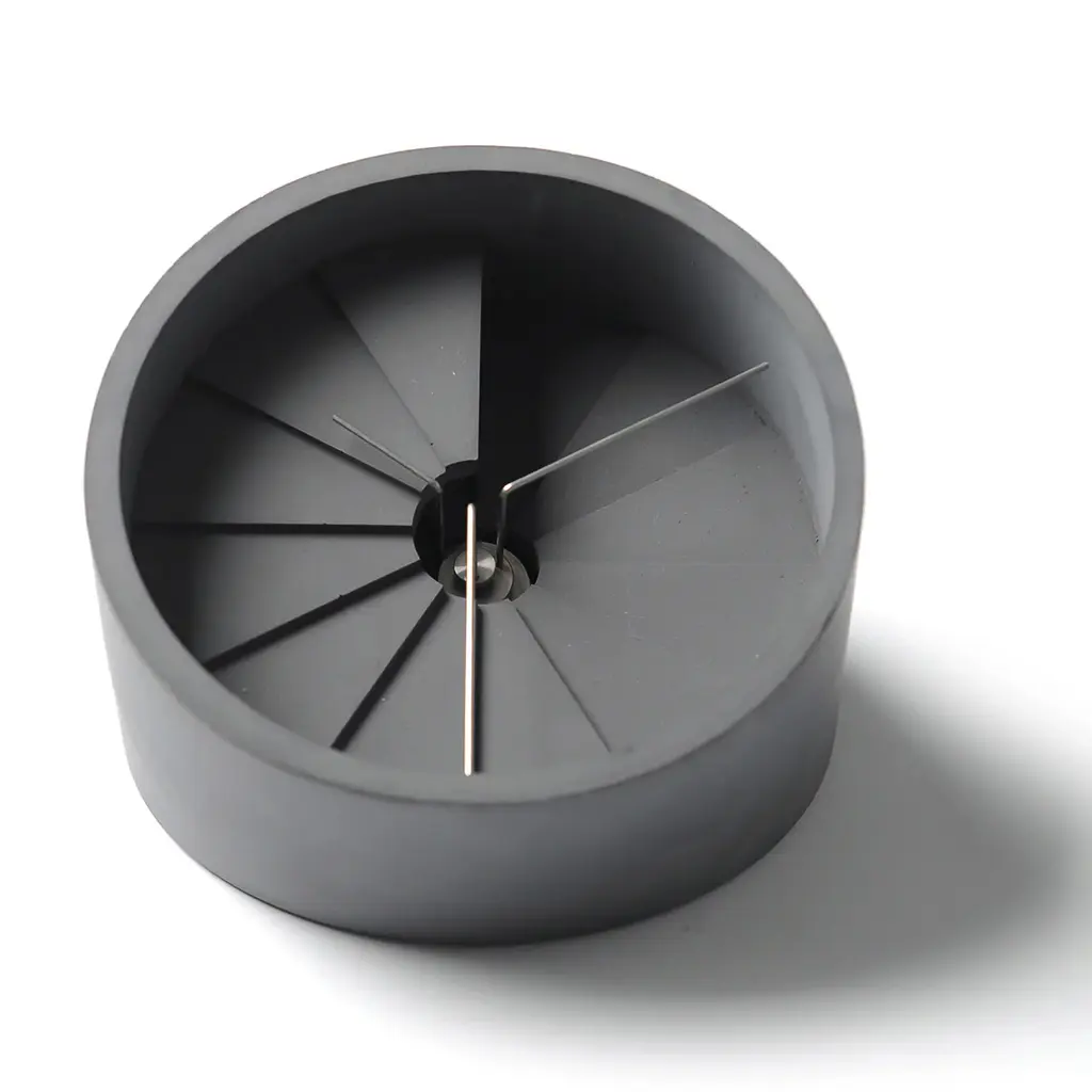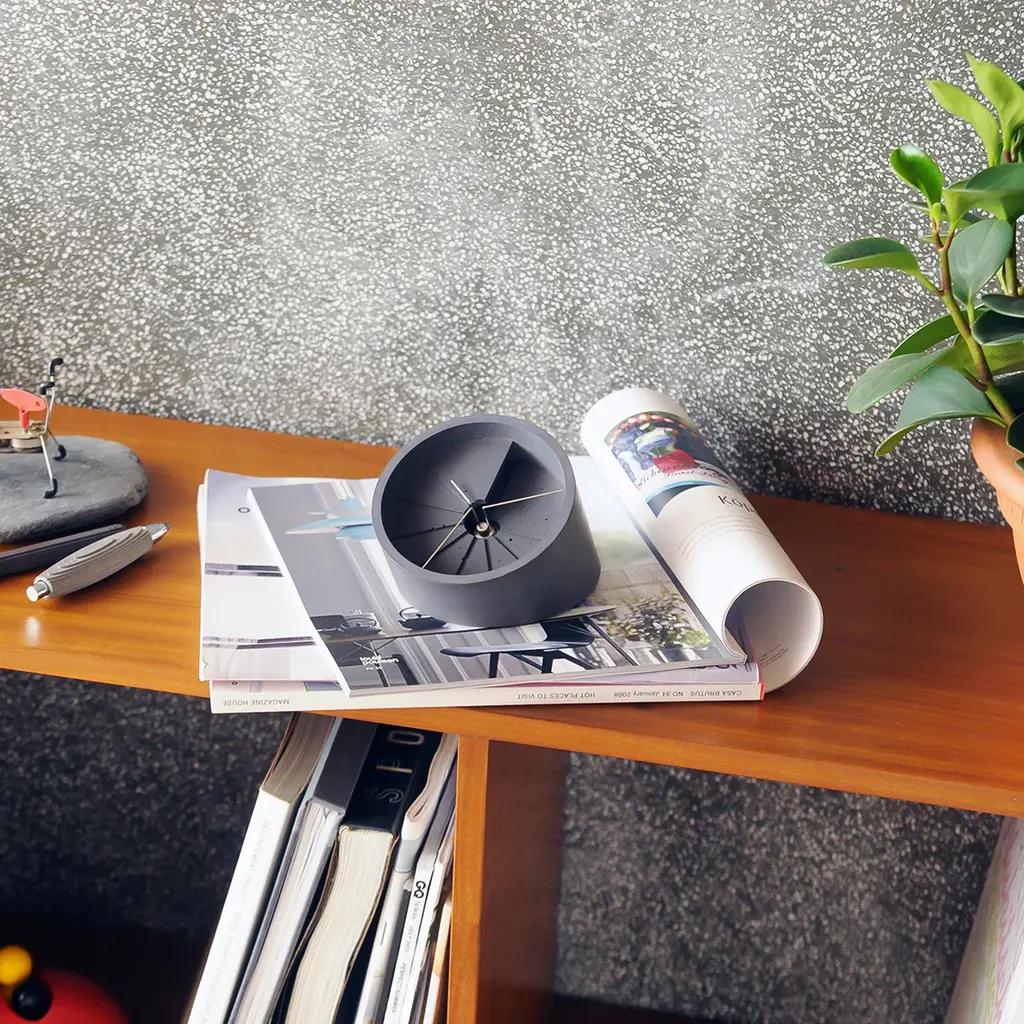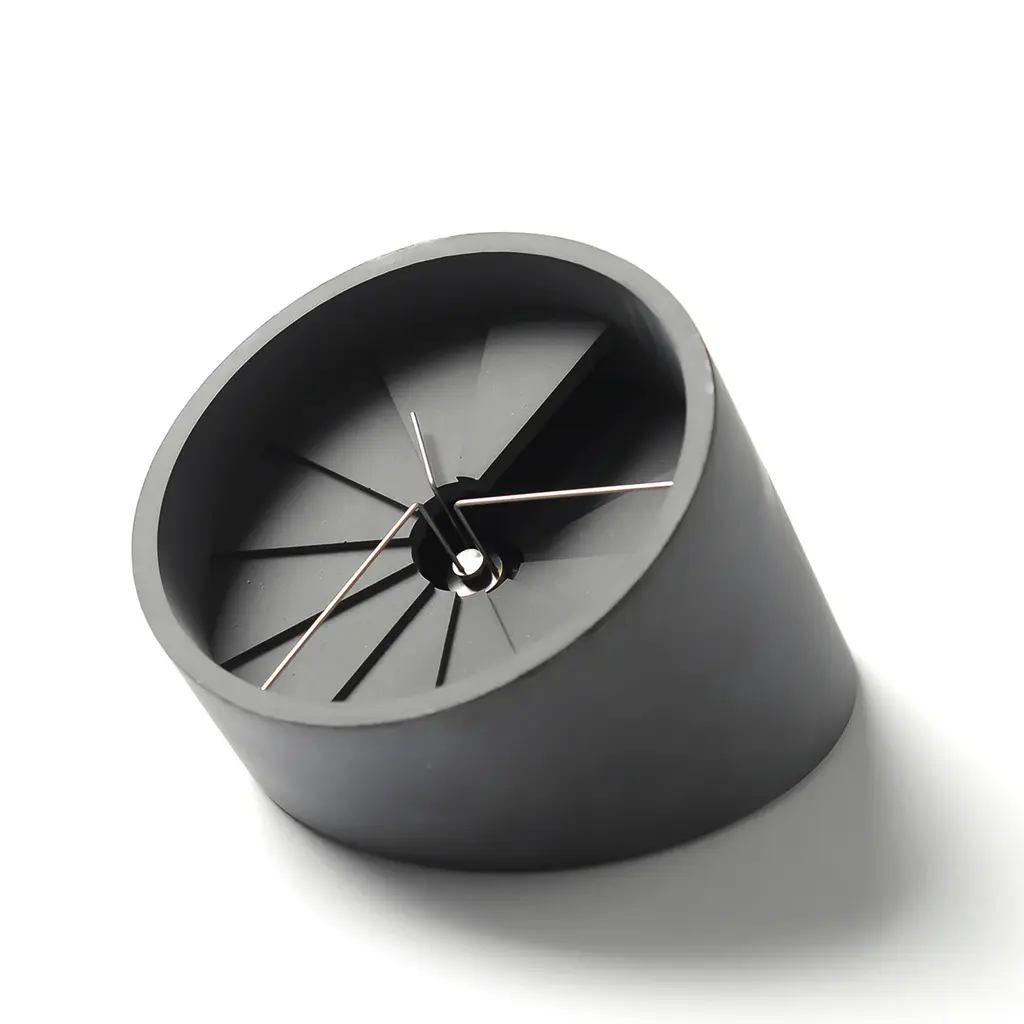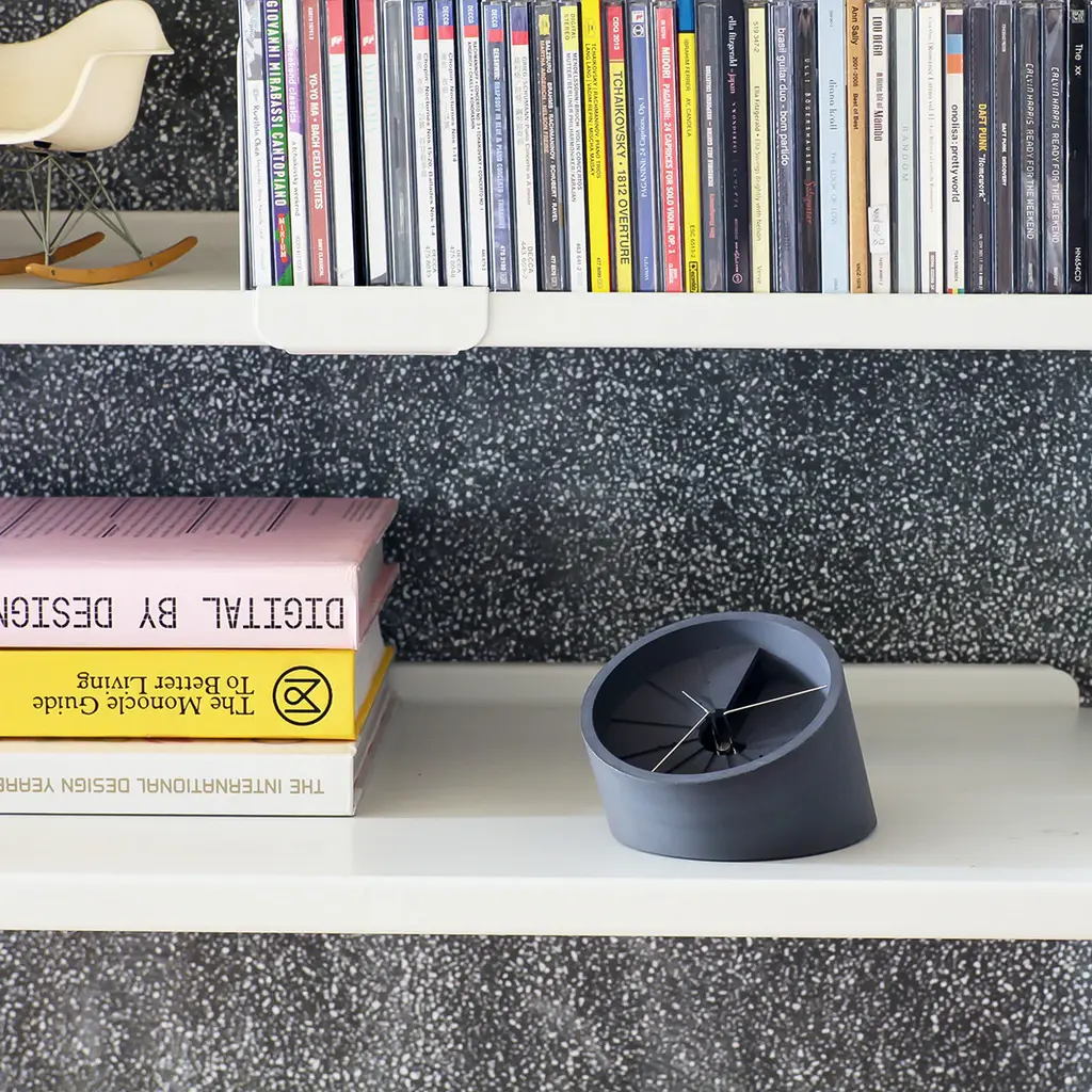 Scientifically speaking, the space-time continuum is the unification of the three spatial dimensions and time as the fourth. Designers Sean Yu and Yi-ting Cheng of 22 Design Studio have distorted this technical definition in favor of an artistic representation, as manifested in their 4th Dimension Table Clock. The gray concrete clock demonstrates flexibility in height, width, and depth through its spiral staircase form on which the hands of the clock lightly travel. The interplay of dynamic levels and light and shadow help showcase the relationship between time and space. The materiality of the piece itself – the manner in which concrete turns a darker gray through handling and use – is another expression of the correlation between the passage on time and its impact on the physical world.
