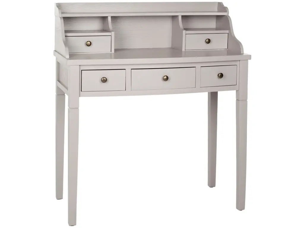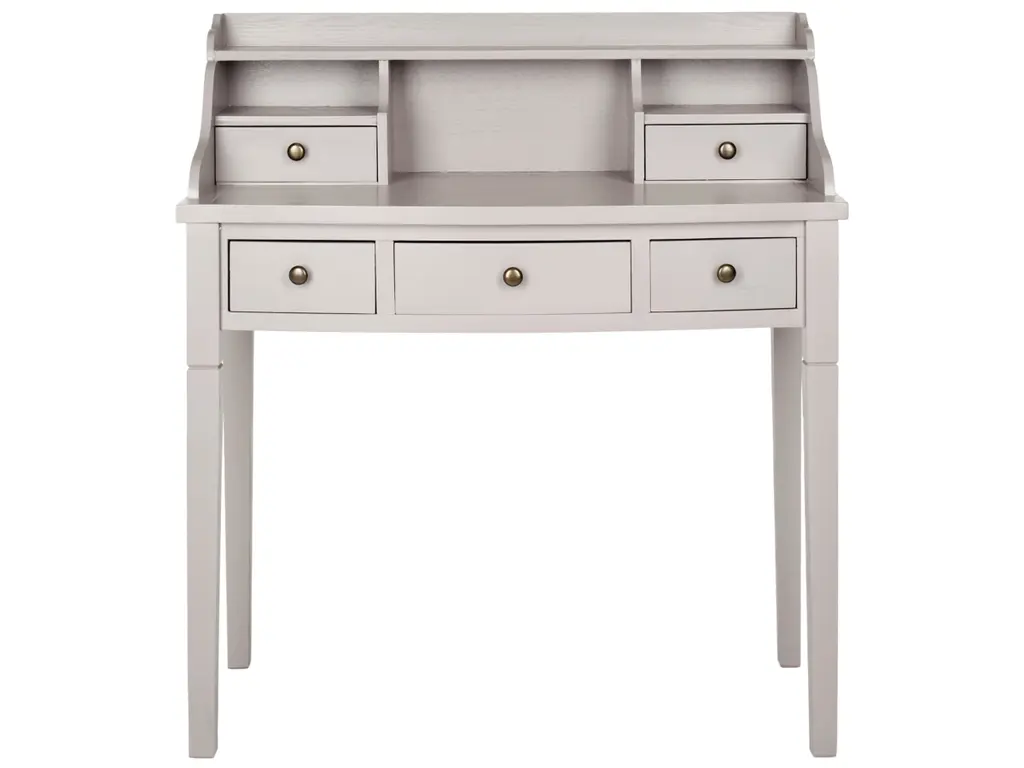 Get organized with help from the Landon 5-drawer writing desk. In vintage casual style, this attractive desk fast-forwards the old-fashioned roll top desk into the 21st century with a chic gray finish. Use it in a home office, bedroom, den, or perhaps in the kitchen as the kids' workstation. Its drawers and storage cubbies provide space for keeping all of your essentials within reach.