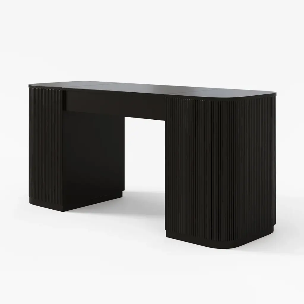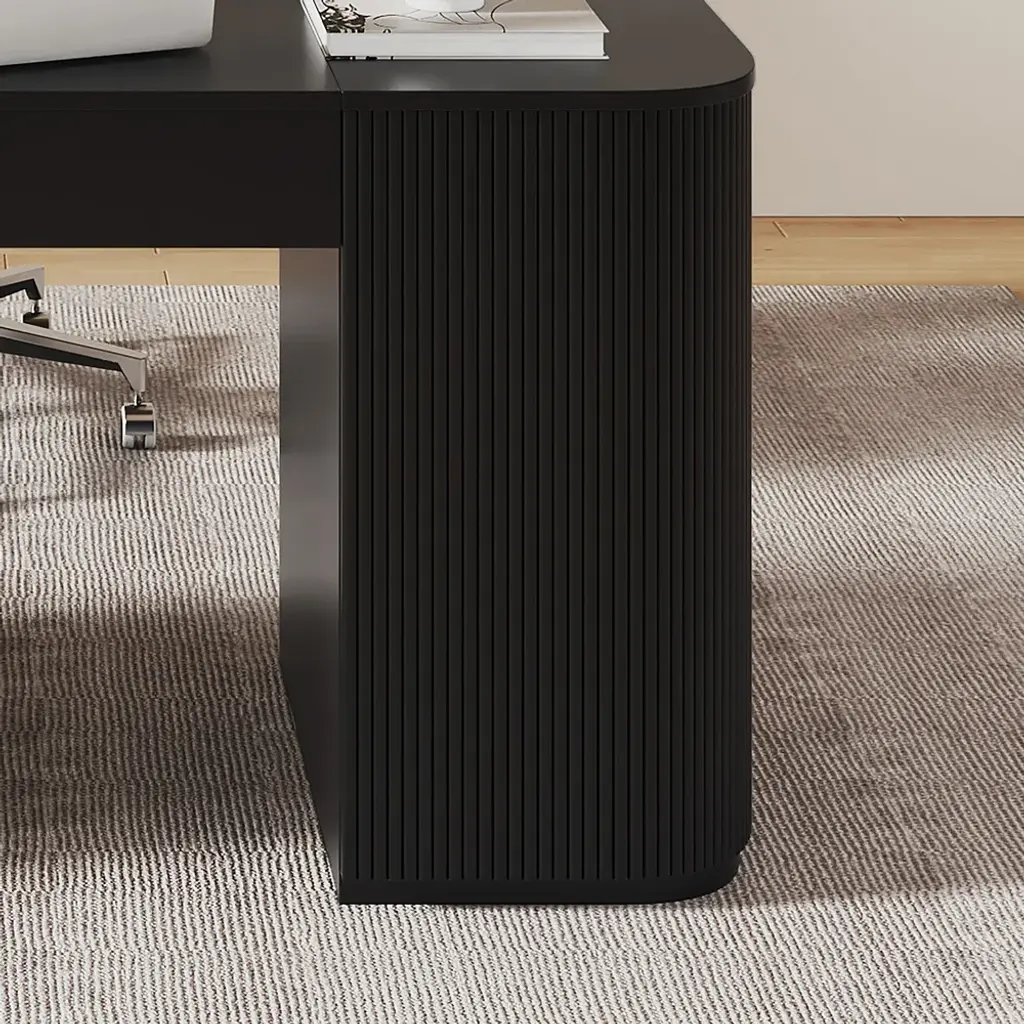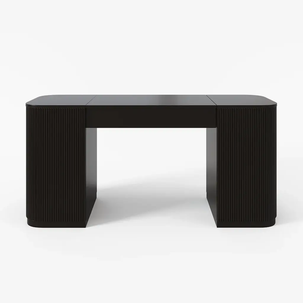 Revolutionize your workday with this 60" height-adjustable standing desk. Crafted from warp-resistant engineered wood, it transitions smoothly between sitting/standing positions. Features 2 doors + 4 cabinets for hidden storage, plus fluted panels for modern elegance. Perfect for ergonomic home offices.