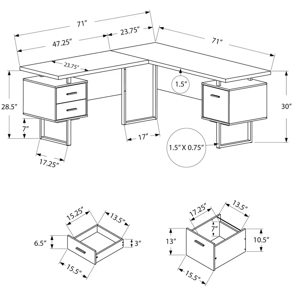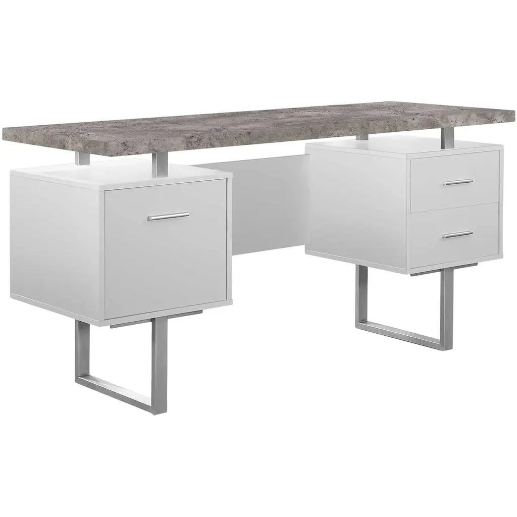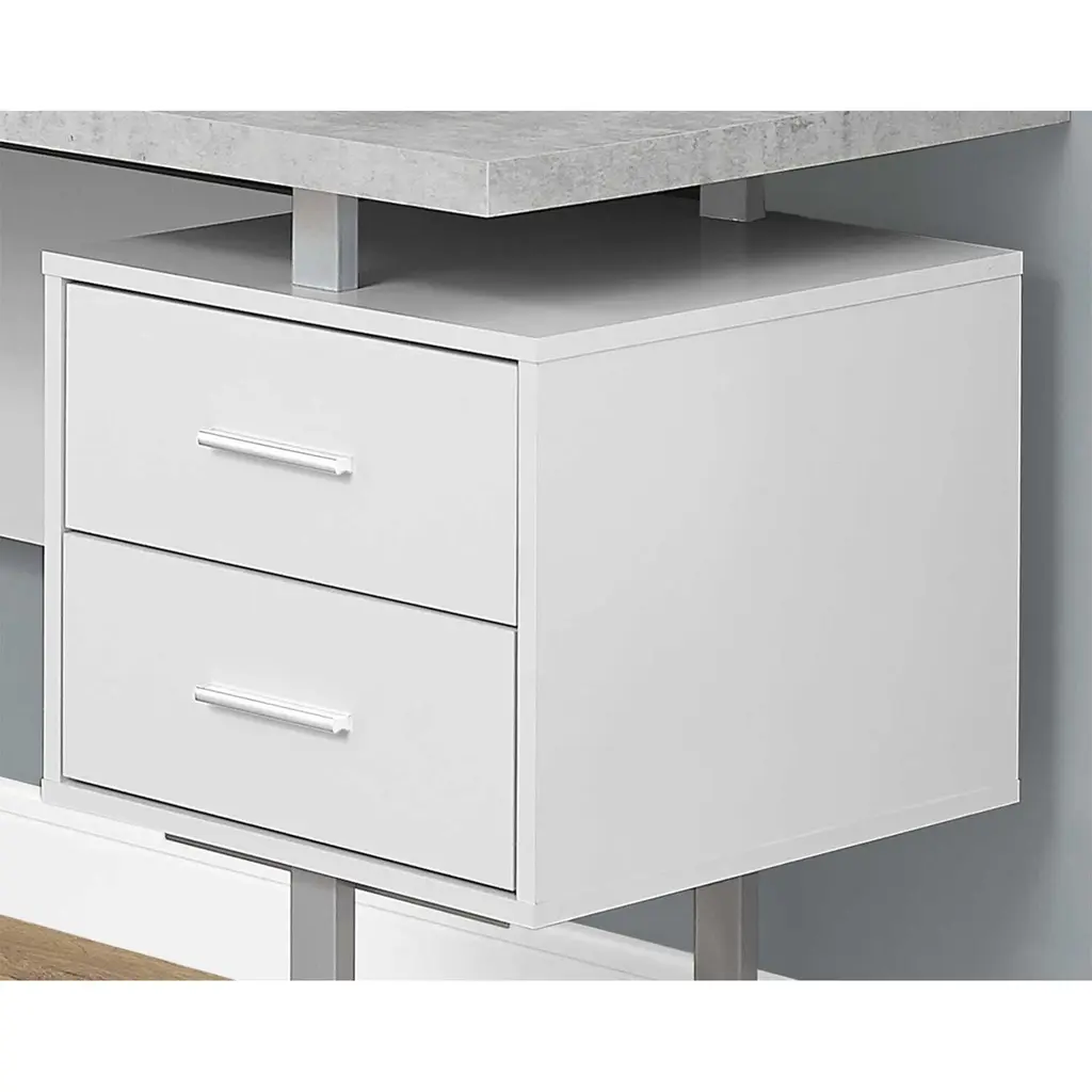 70" Grey And White 3-Drawer L-Shape Computer Desk