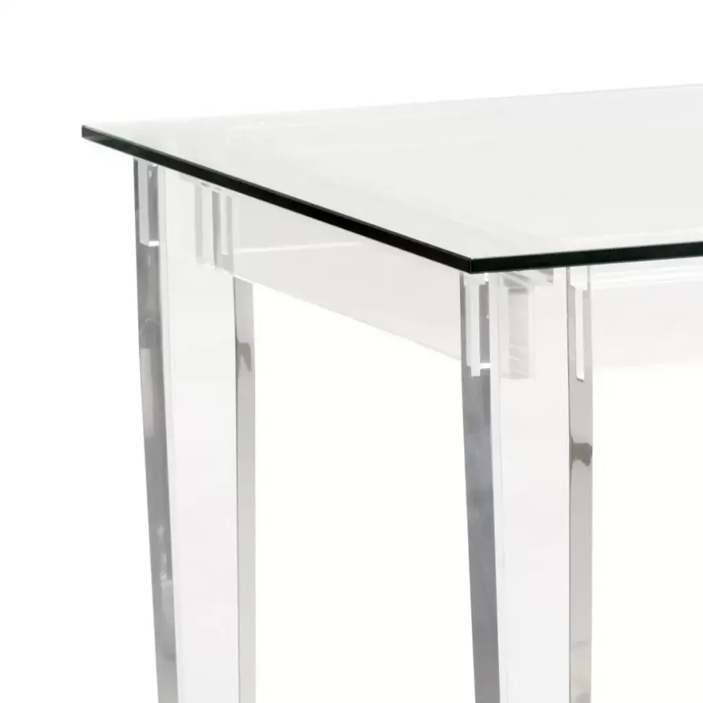 Acrylic Desk With Nickel Accents And A Glass Top.