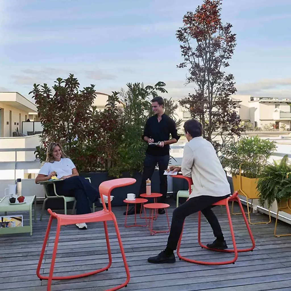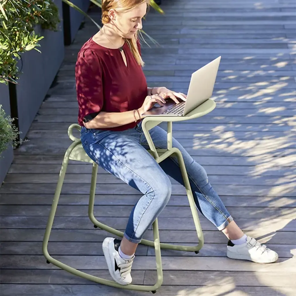 Spice up your work-from-home setup with the Adadesk Rocking Desk from Fermob. With a fun and innovative design, this rocking desk puts a unique spin on the ordinary desk, leaning on curves and fluid movement rather than straight lines. Use the top portion of the desk for lightweight objects, and use the larger portion for seating in various styles. Made of tubular aluminum, the seat is made of curved aluminum slats, and the mini shelf is a solid aluminum sheet.