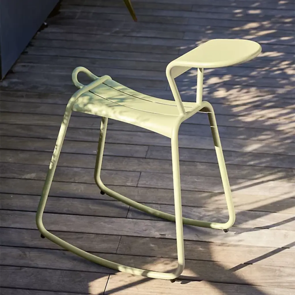 Spice up your work-from-home setup with the Adadesk Rocking Desk from Fermob. With a fun and innovative design, this rocking desk puts a unique spin on the ordinary desk, leaning on curves and fluid movement rather than straight lines. Use the top portion of the desk for lightweight objects, and use the larger portion for seating in various styles. Made of tubular aluminum, the seat is made of curved aluminum slats, and the mini shelf is a solid aluminum sheet.