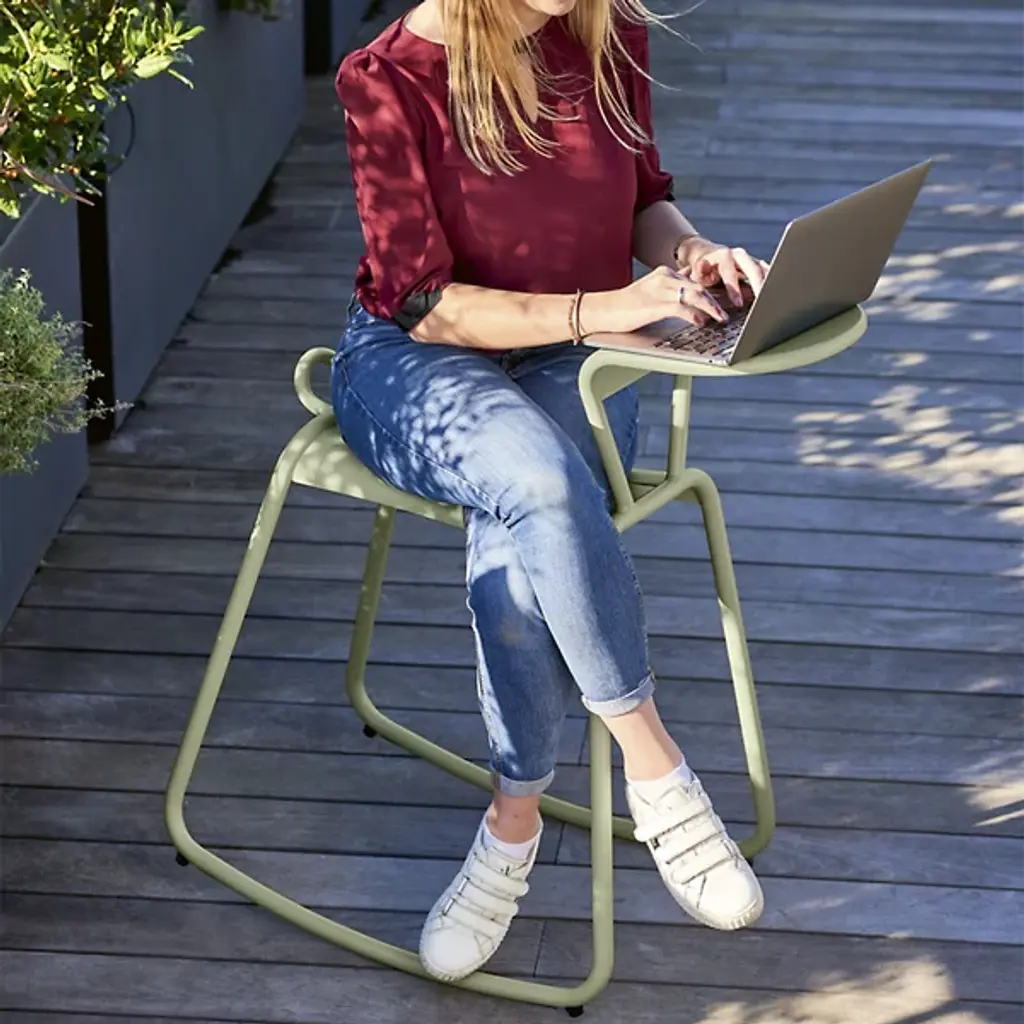 Spice up your work-from-home setup with the Adadesk Rocking Desk from Fermob. With a fun and innovative design, this rocking desk puts a unique spin on the ordinary desk, leaning on curves and fluid movement rather than straight lines. Use the top portion of the desk for lightweight objects, and use the larger portion for seating in various styles. Made of tubular aluminum, the seat is made of curved aluminum slats, and the mini shelf is a solid aluminum sheet.