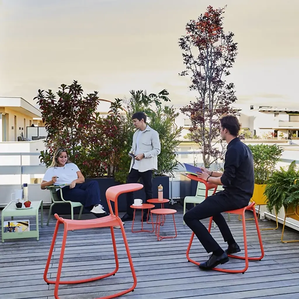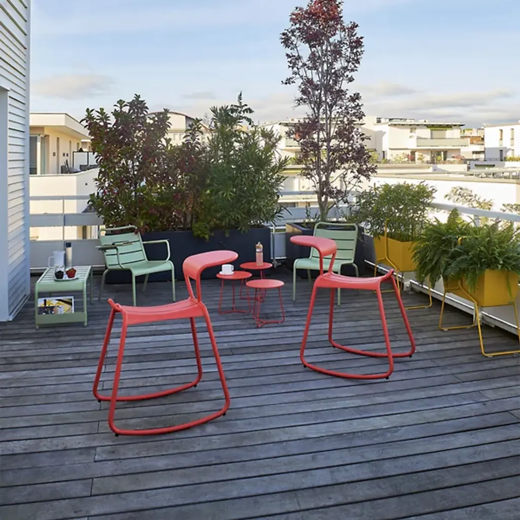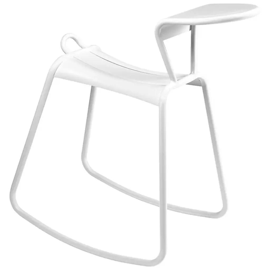 Spice up your work-from-home setup with the Adadesk Rocking Desk from Fermob. With a fun and innovative design, this rocking desk puts a unique spin on the ordinary desk, leaning on curves and fluid movement rather than straight lines. Use the top portion of the desk for lightweight objects, and use the larger portion for seating in various styles. Made of tubular aluminum, the seat is made of curved aluminum slats, and the mini shelf is a solid aluminum sheet.