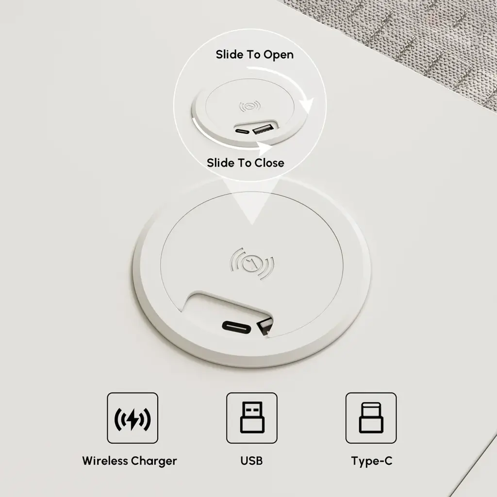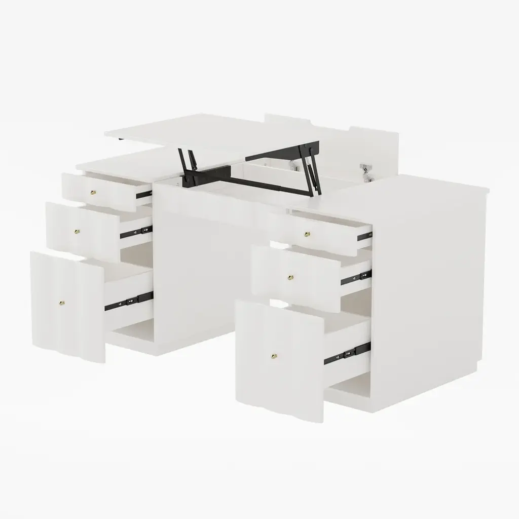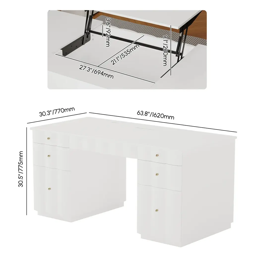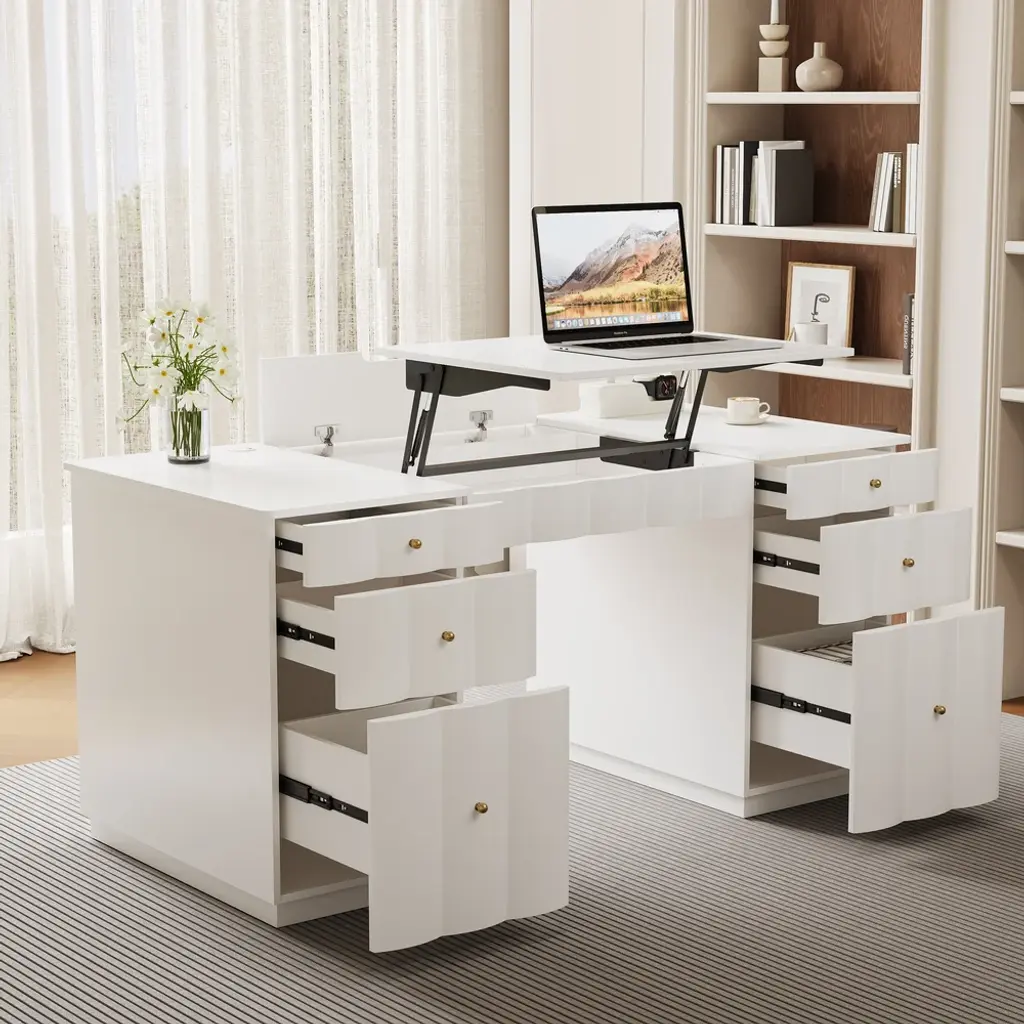 Transform your workspace with this French-style adjustable desk. Featuring a manual lift mechanism for sit-stand flexibility, 6 organized drawers, and built-in wireless charging with ports. Its engineered wood construction and integrated cable management ensure durability and clutter-free productivity.